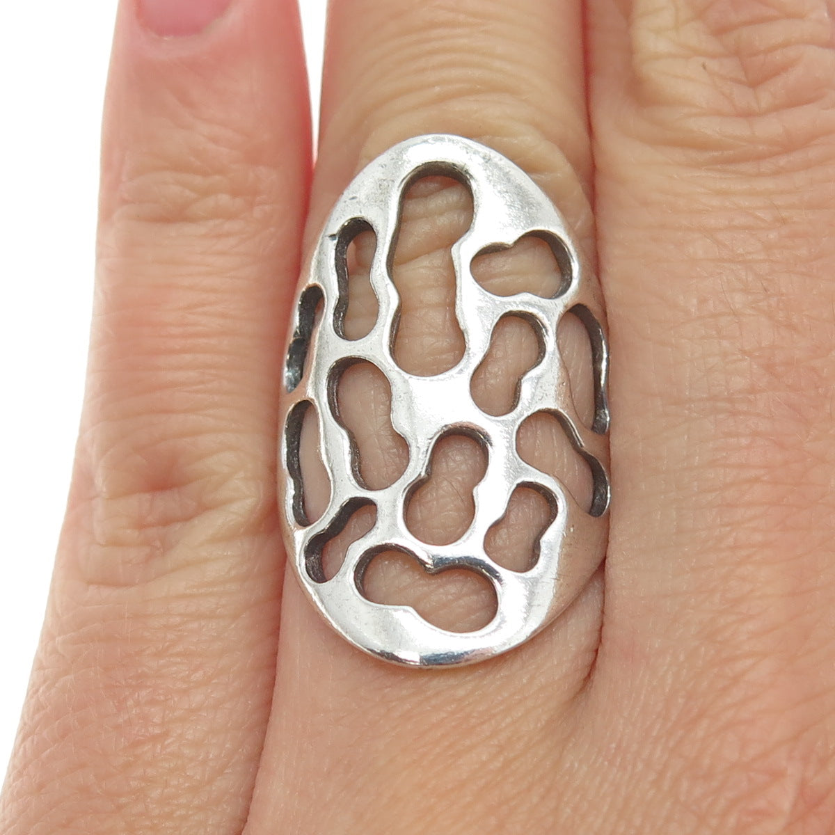 925 Sterling Silver Vintage Modernist Statement Ring Size 5.75
