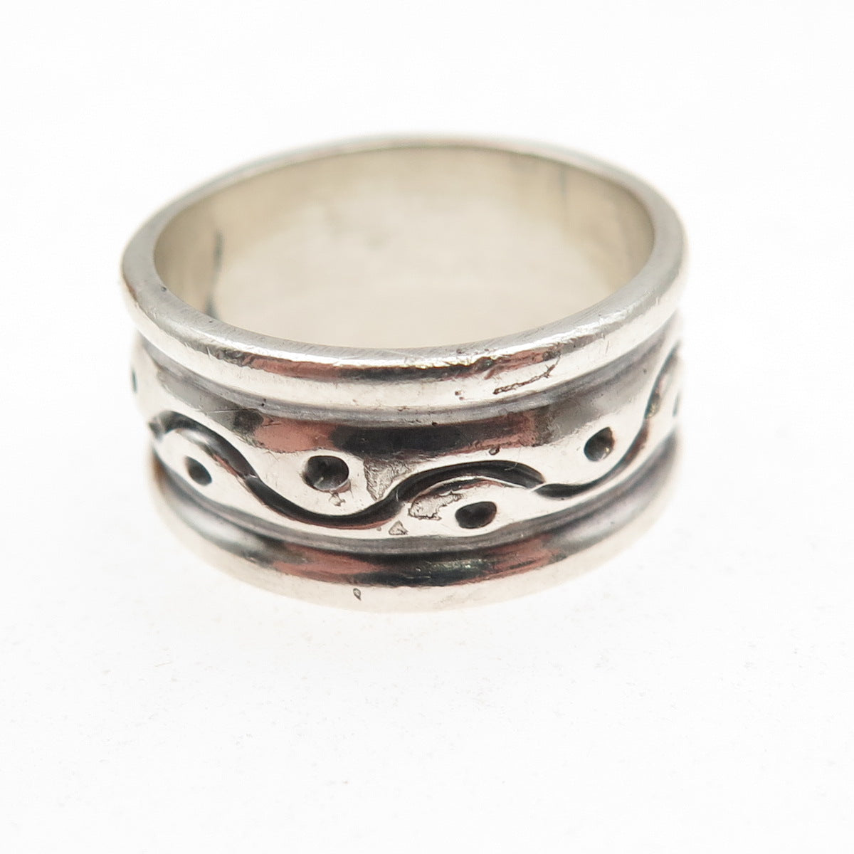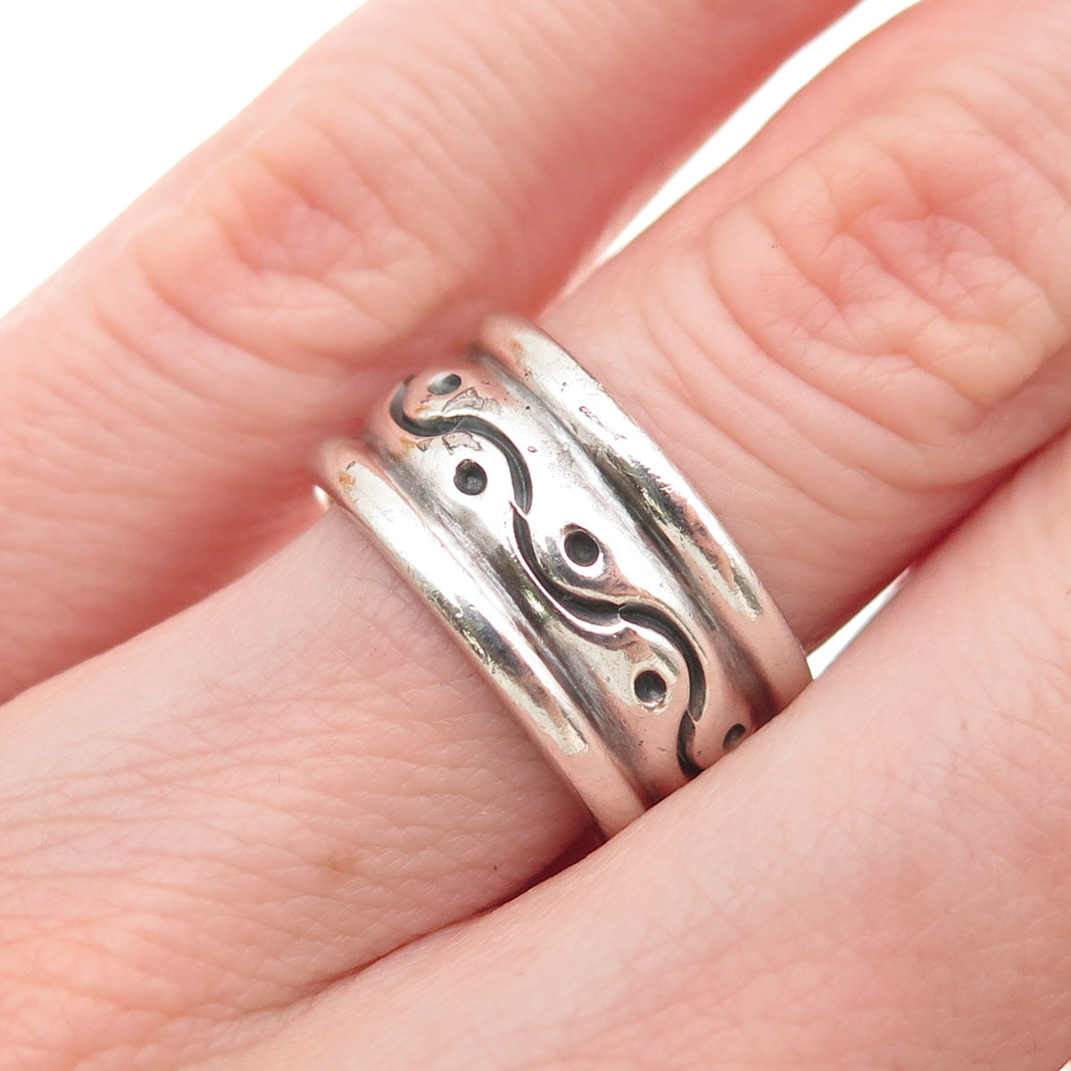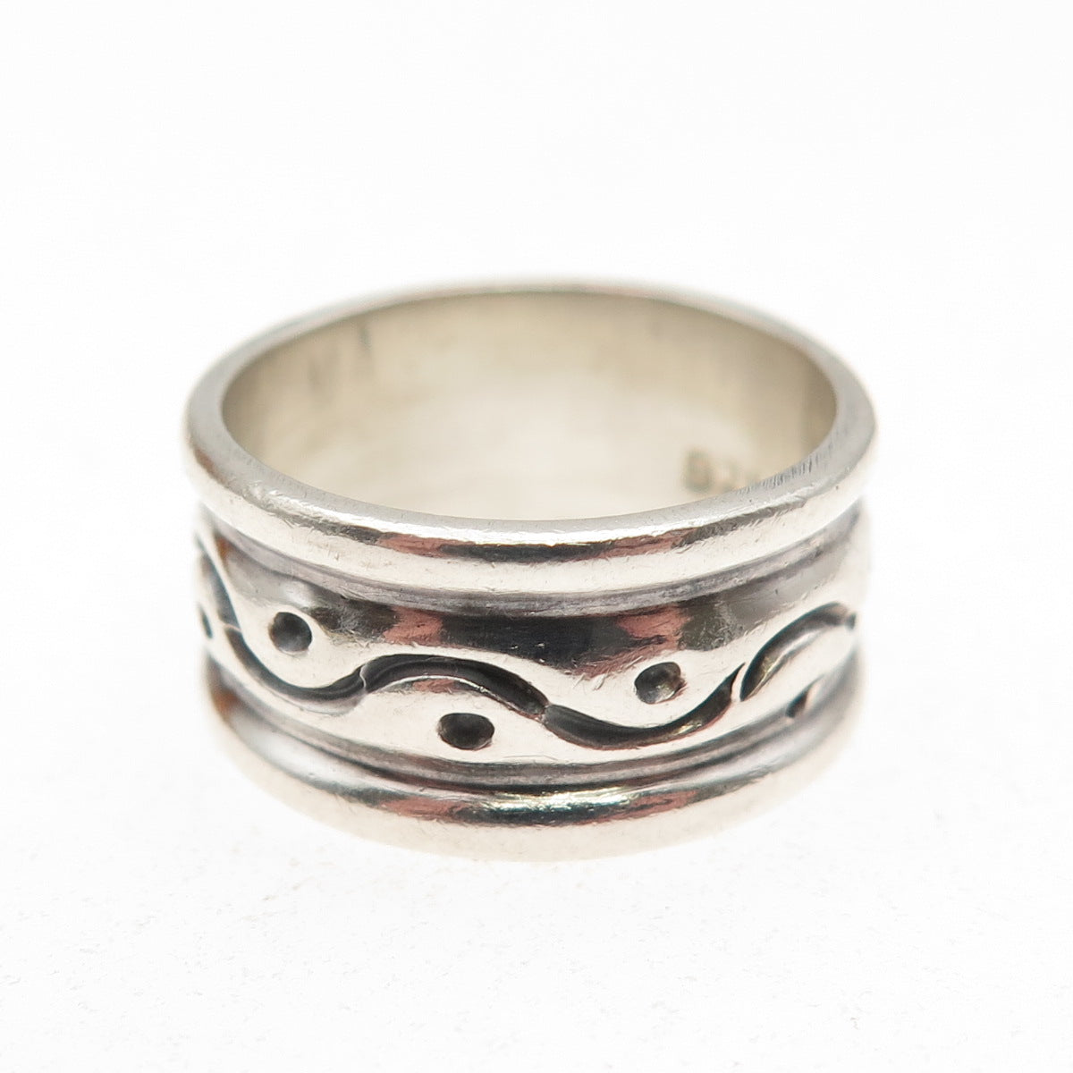 925 Sterling Silver Vintage Modernist Wave Oxidized Band Ring Size 6.25