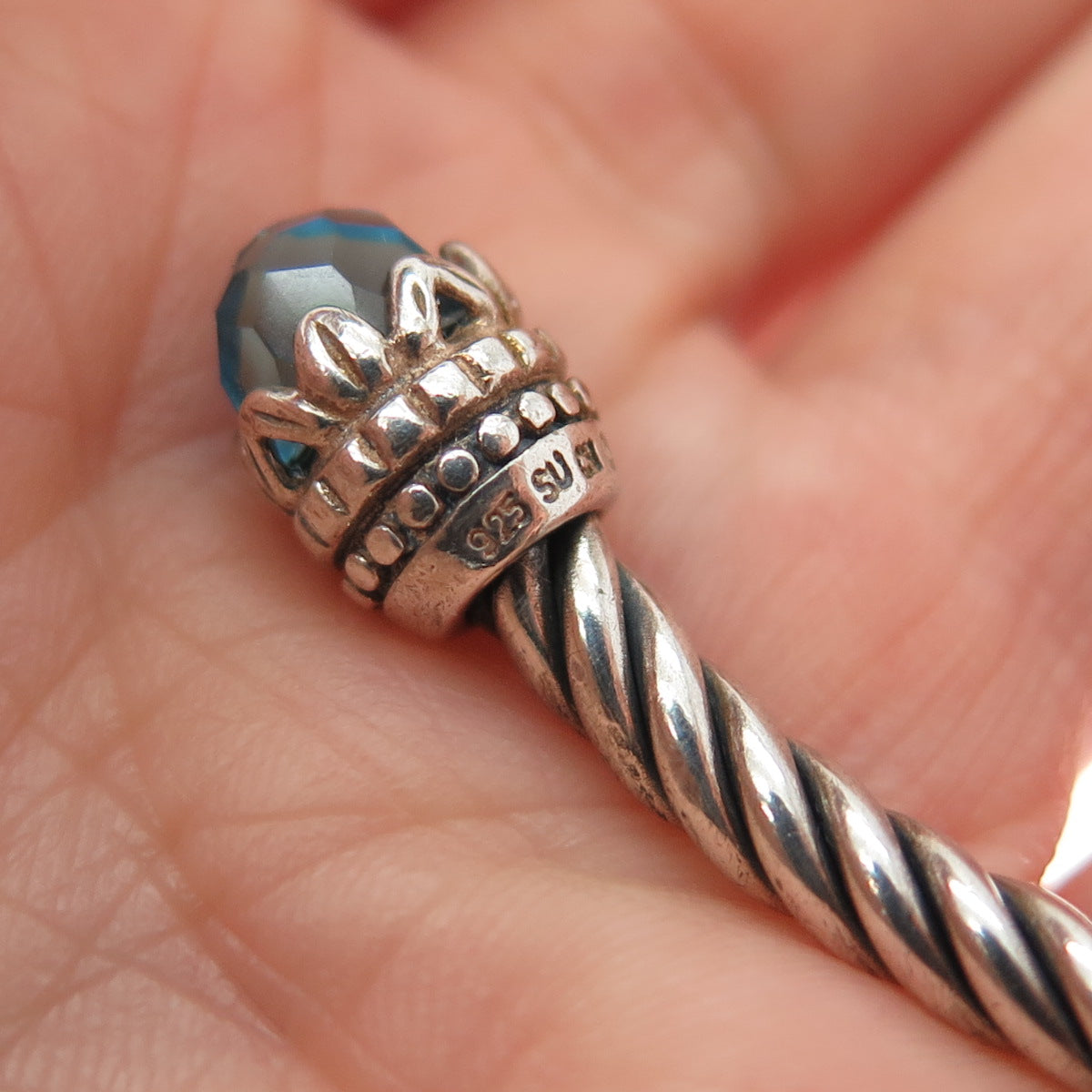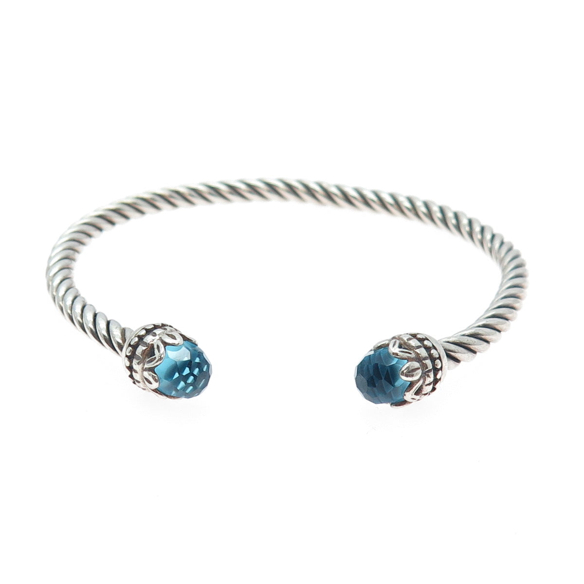 925 Sterling Silver Vintage Nano Topaz Twisted Adjustable Cuff Bracelet 6.25"