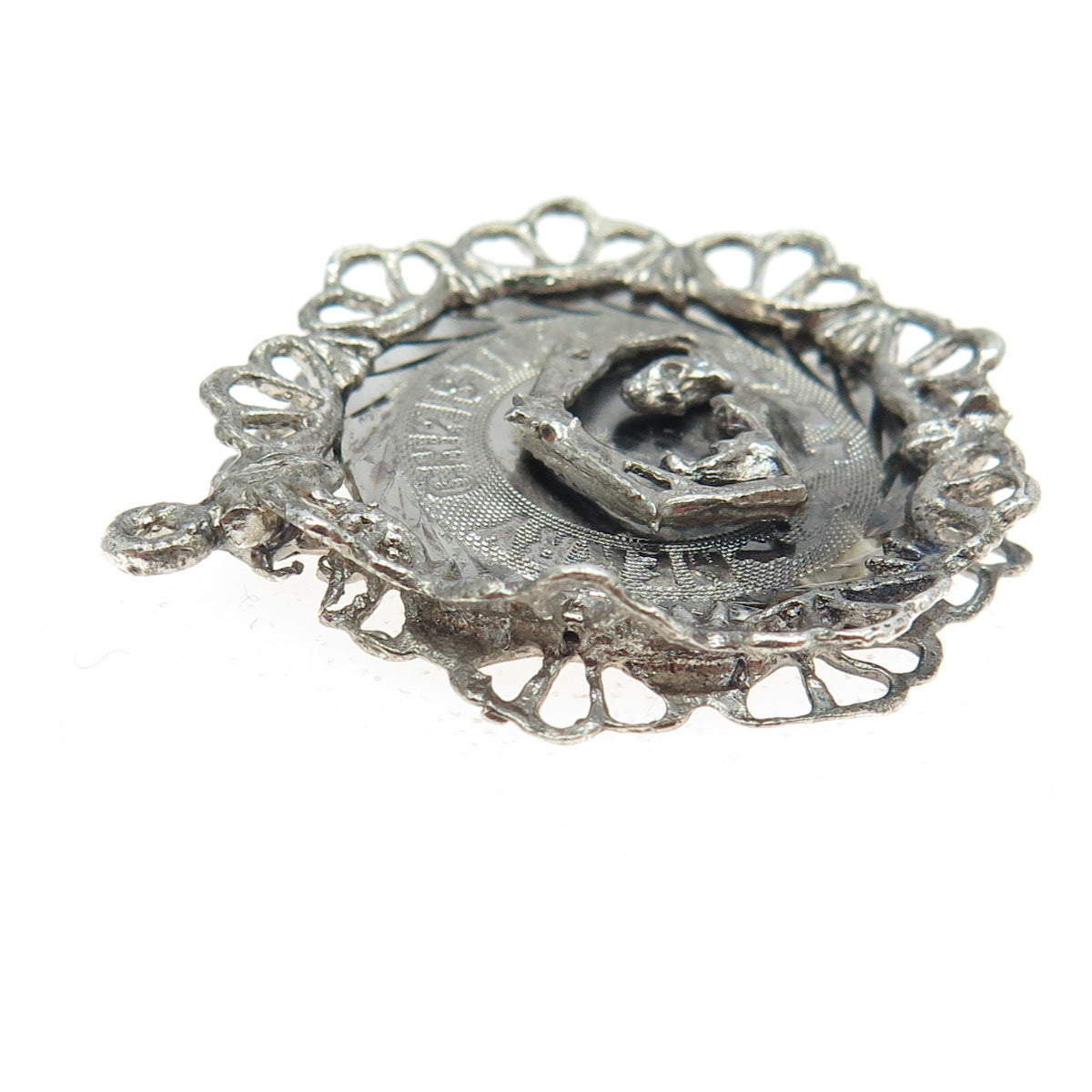 925 Sterling Silver Vintage Nativity Scene Merry Christmas Religious Pendant