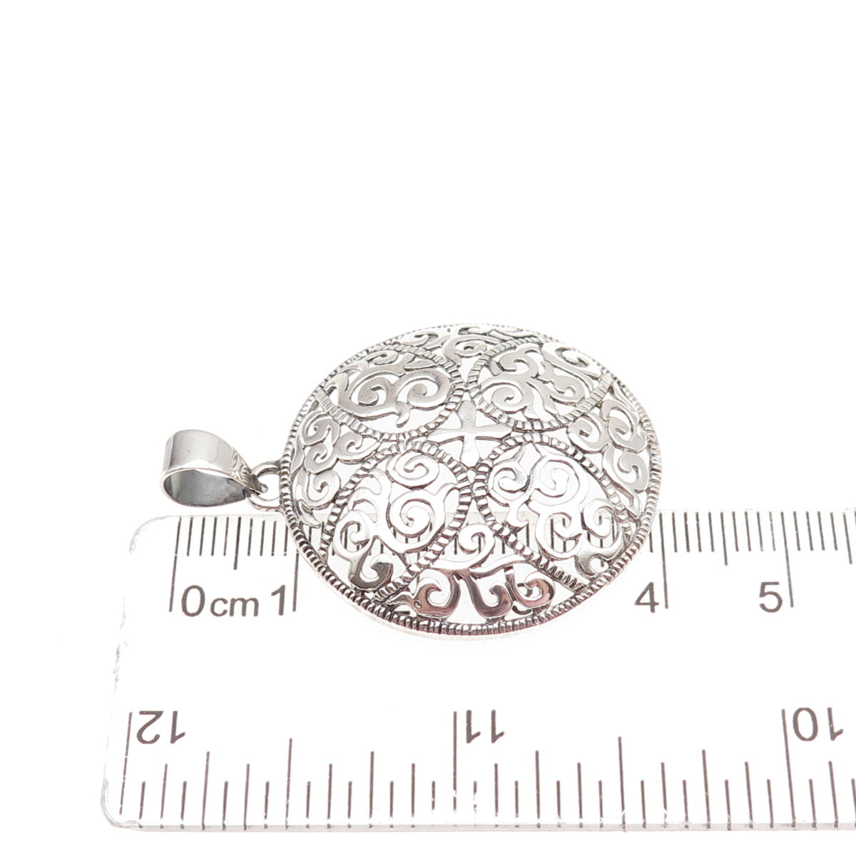 925 Sterling Silver Vintage Ornate Floral Oxidized Charm Pendant