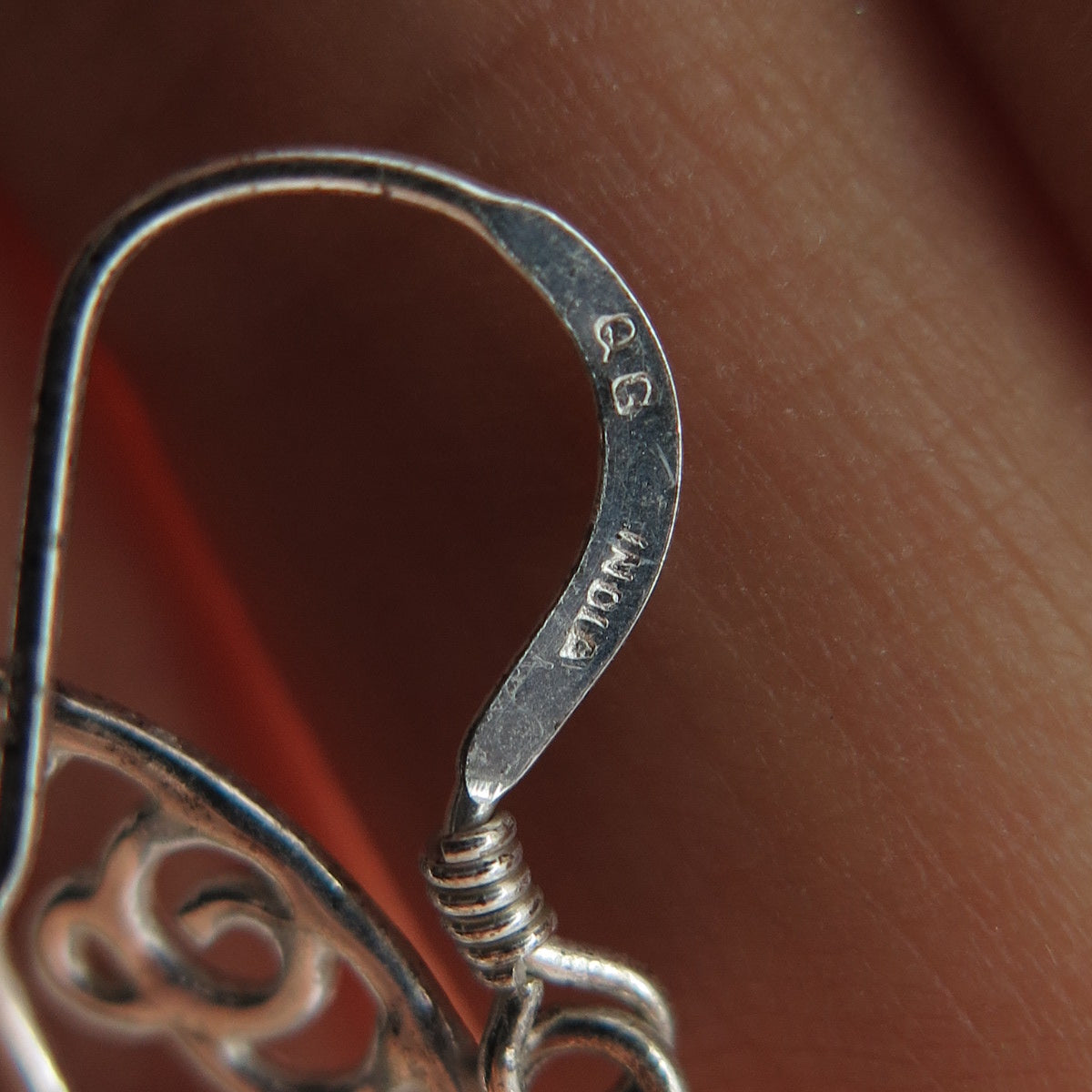 925 Sterling Silver Vintage Ornate Rose Flower Dangle Earrings