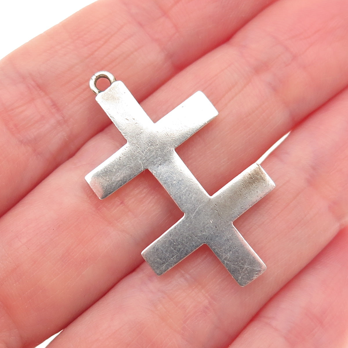 925 Sterling Silver Vintage Orthodox Double Cross Religious Charm Pendant