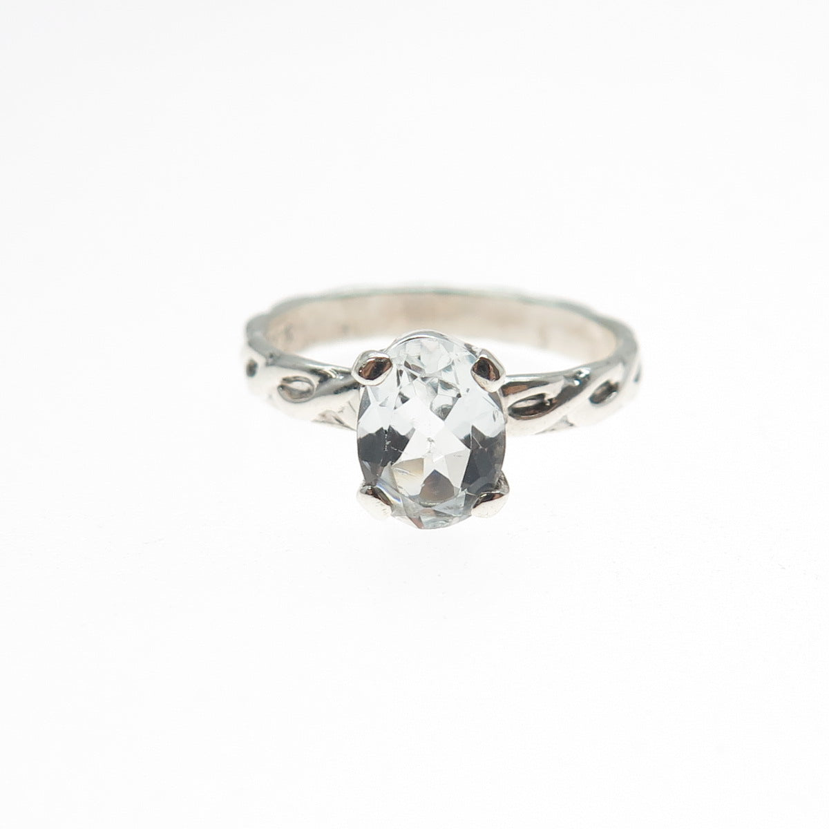 925 Sterling Silver Vintage Oval-Cut C Z Celtic Woven Ring Size 6