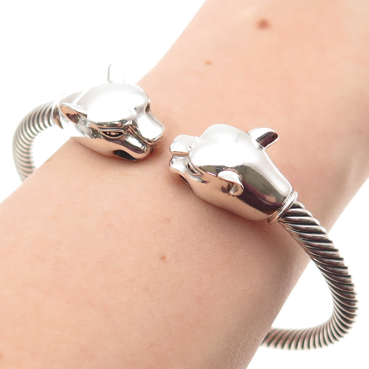 925 Sterling Silver Vintage Panther Adjustable Cable Cuff Bracelet 7"