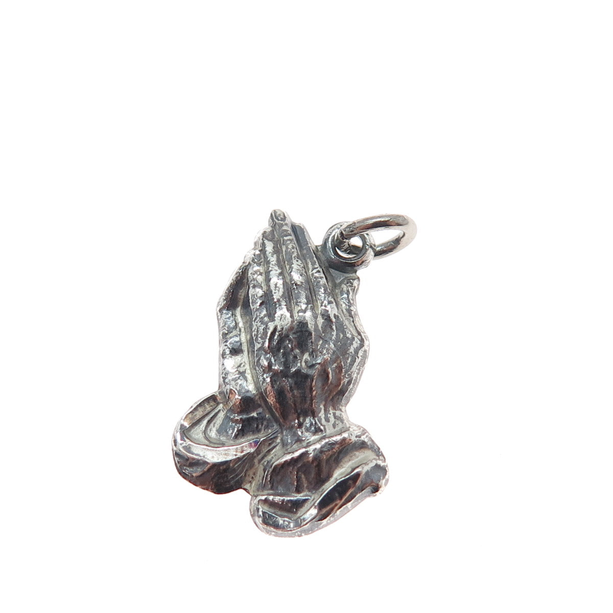 925 Sterling Silver Vintage Praying Hands Religious Oxidized Mini Charm Pendant