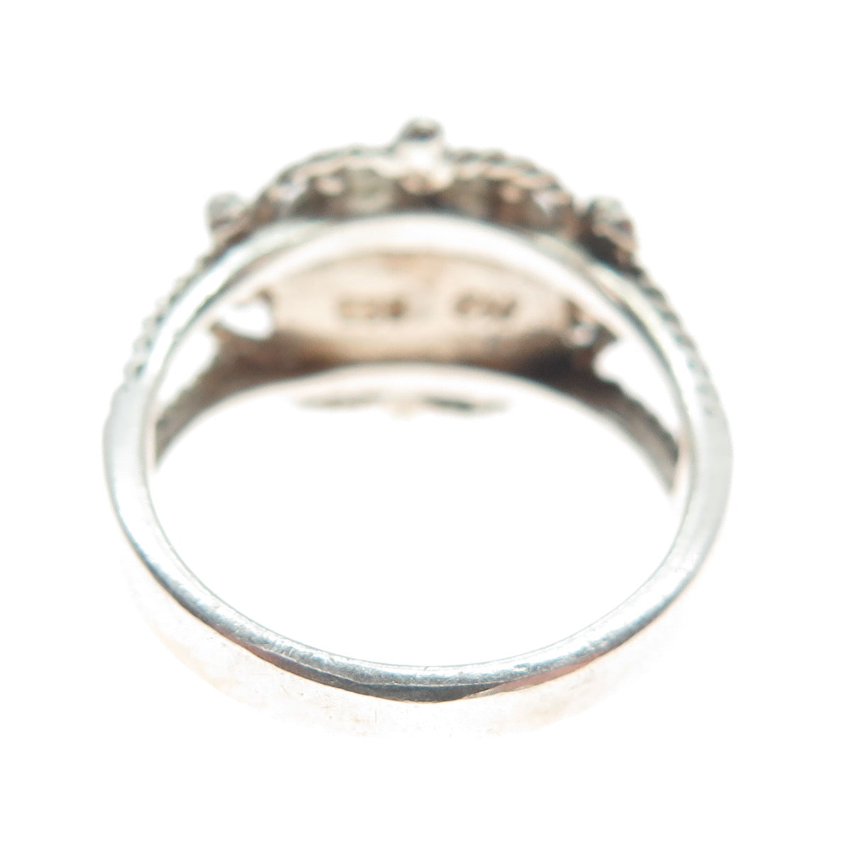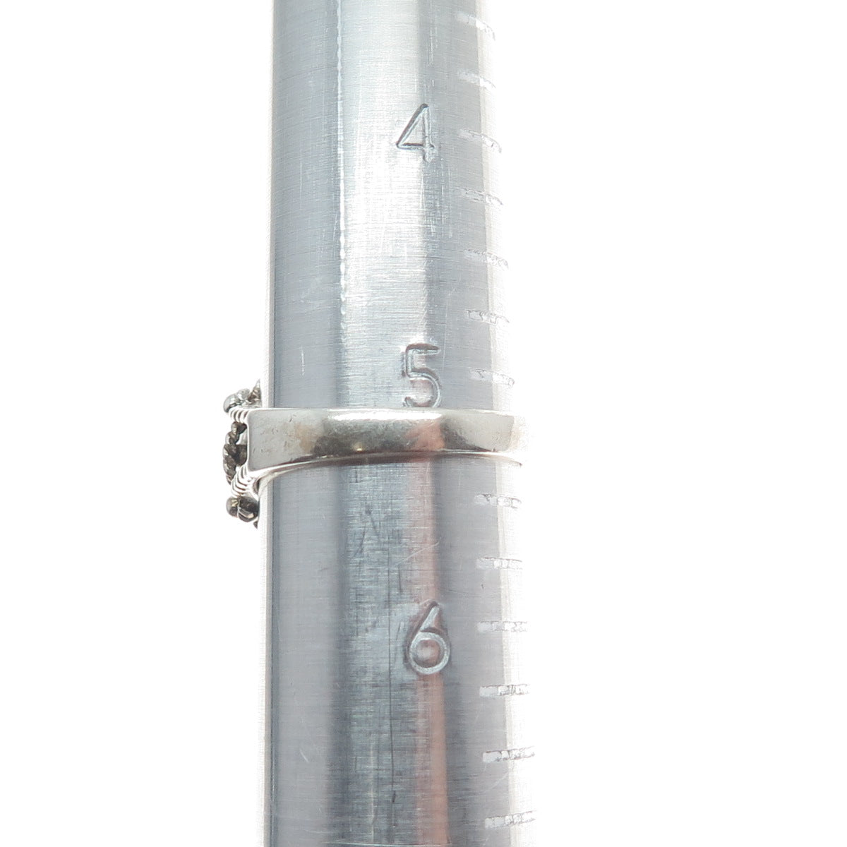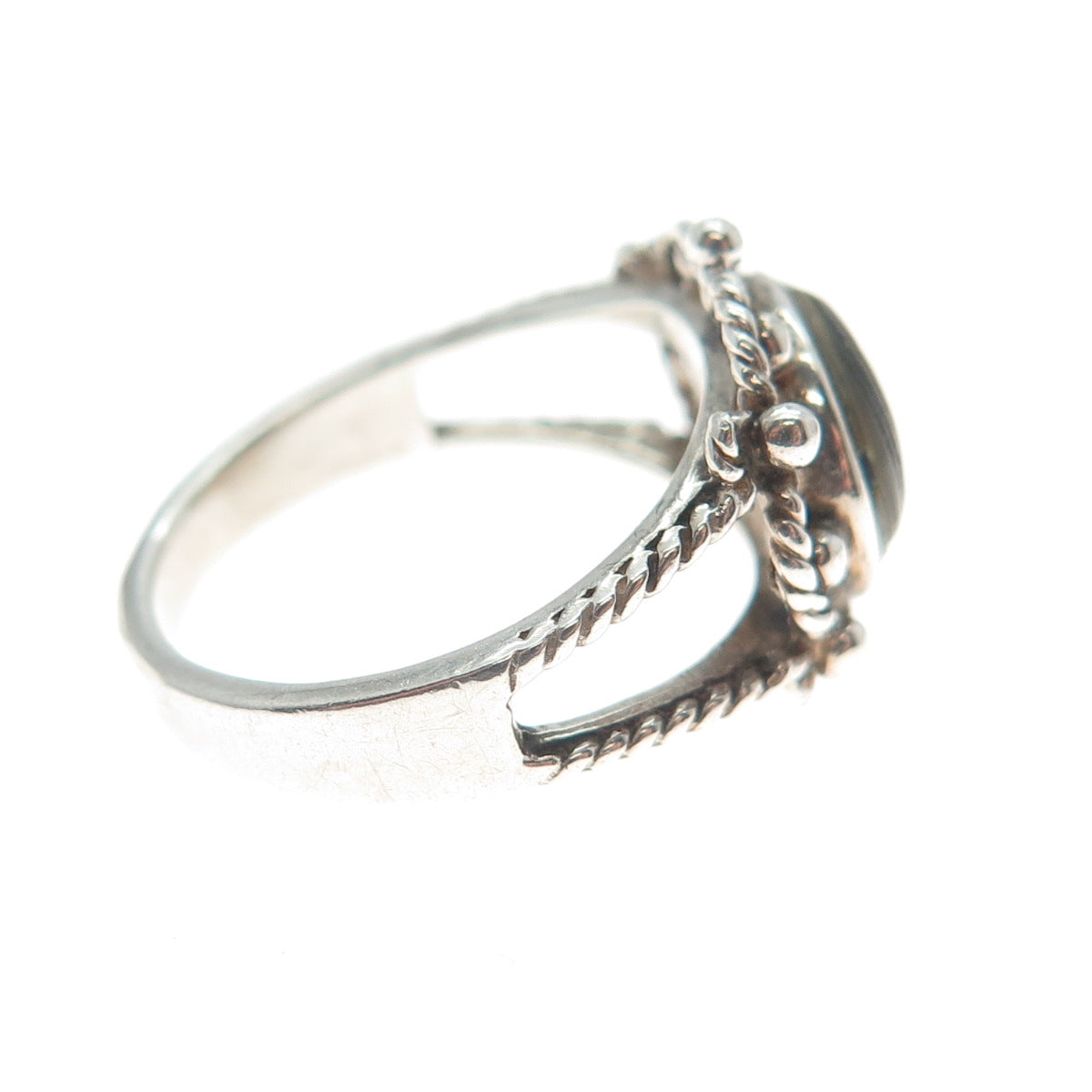 925 Sterling Silver Vintage Real Abalone Shell Modernist Beaded Ring Size 5.25