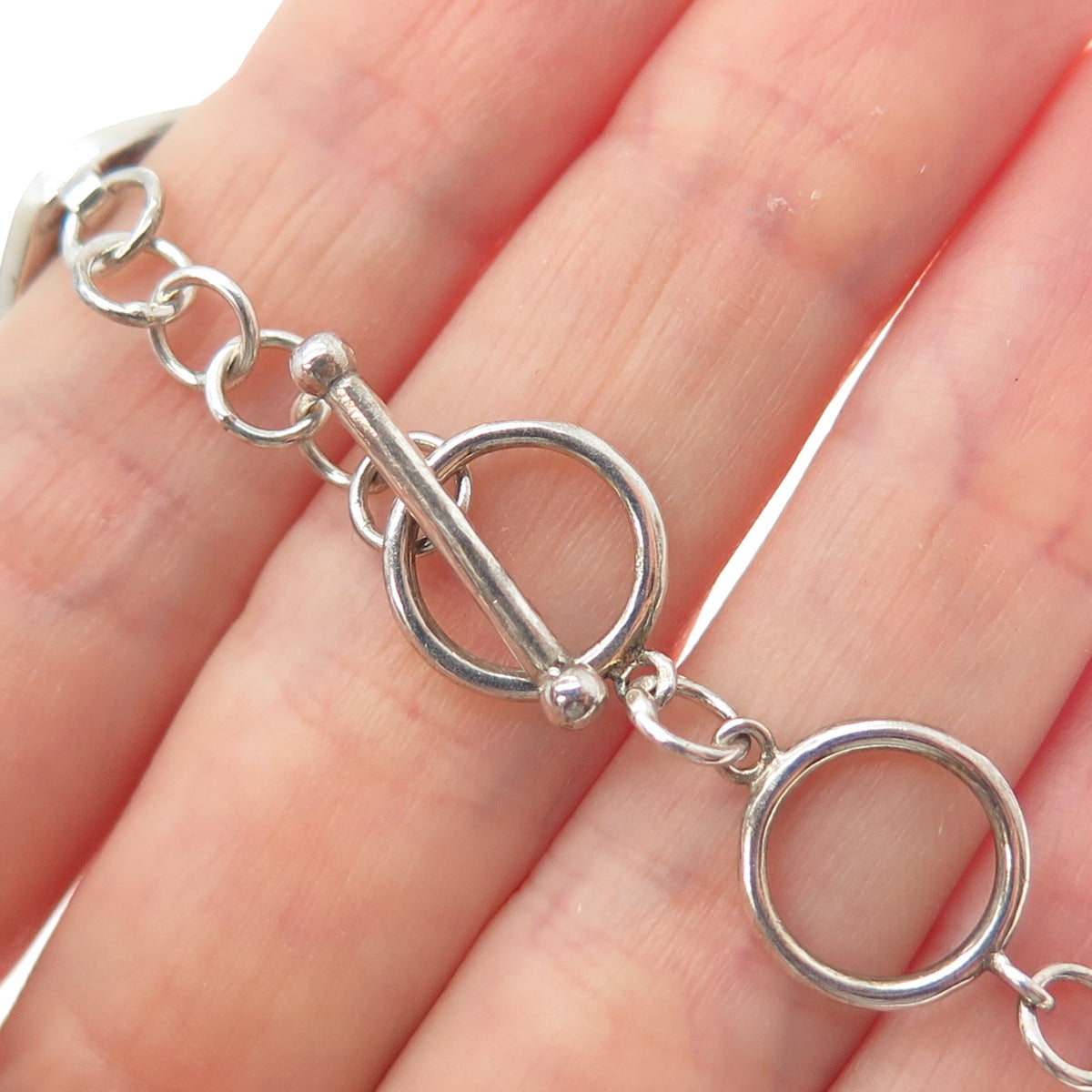 925 Sterling Silver Vintage Real Abalone Shell Modernist Bracelet 6.5-7.5"