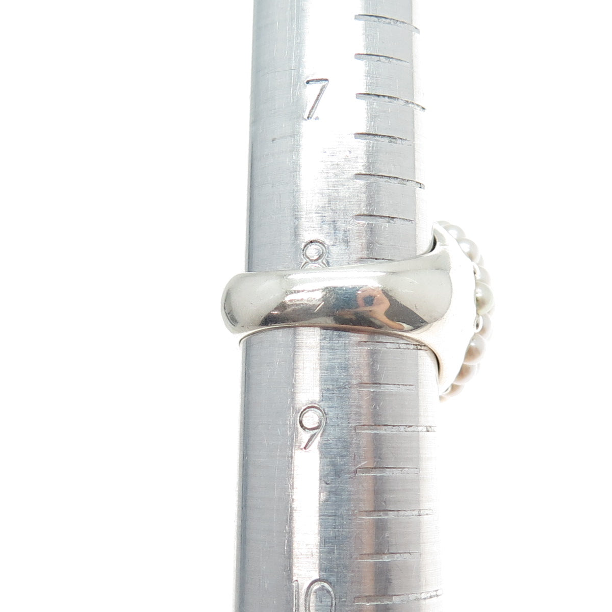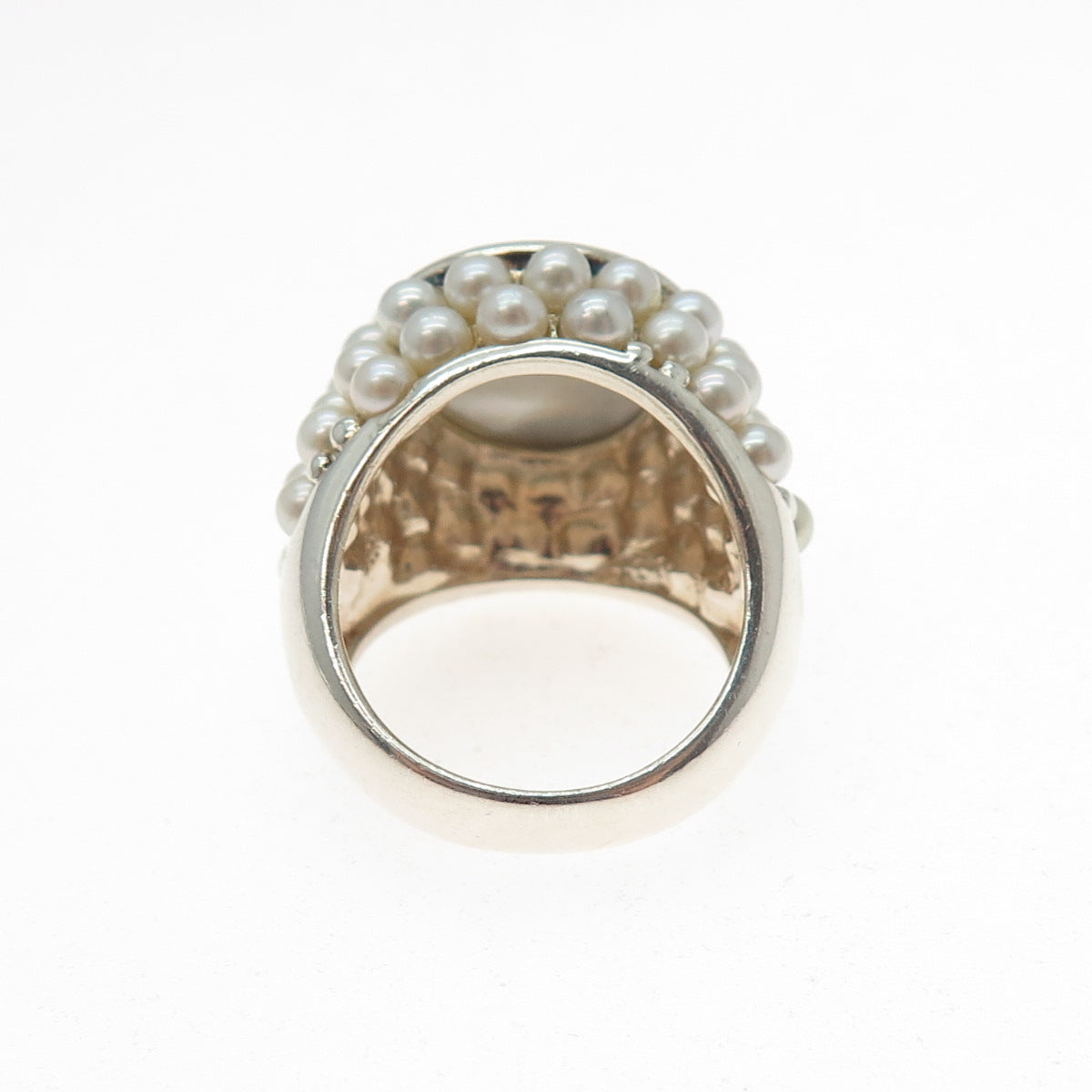 925 Sterling Silver Vintage Real Abalone Shell & Pearl Beaded Ring Size 8.5