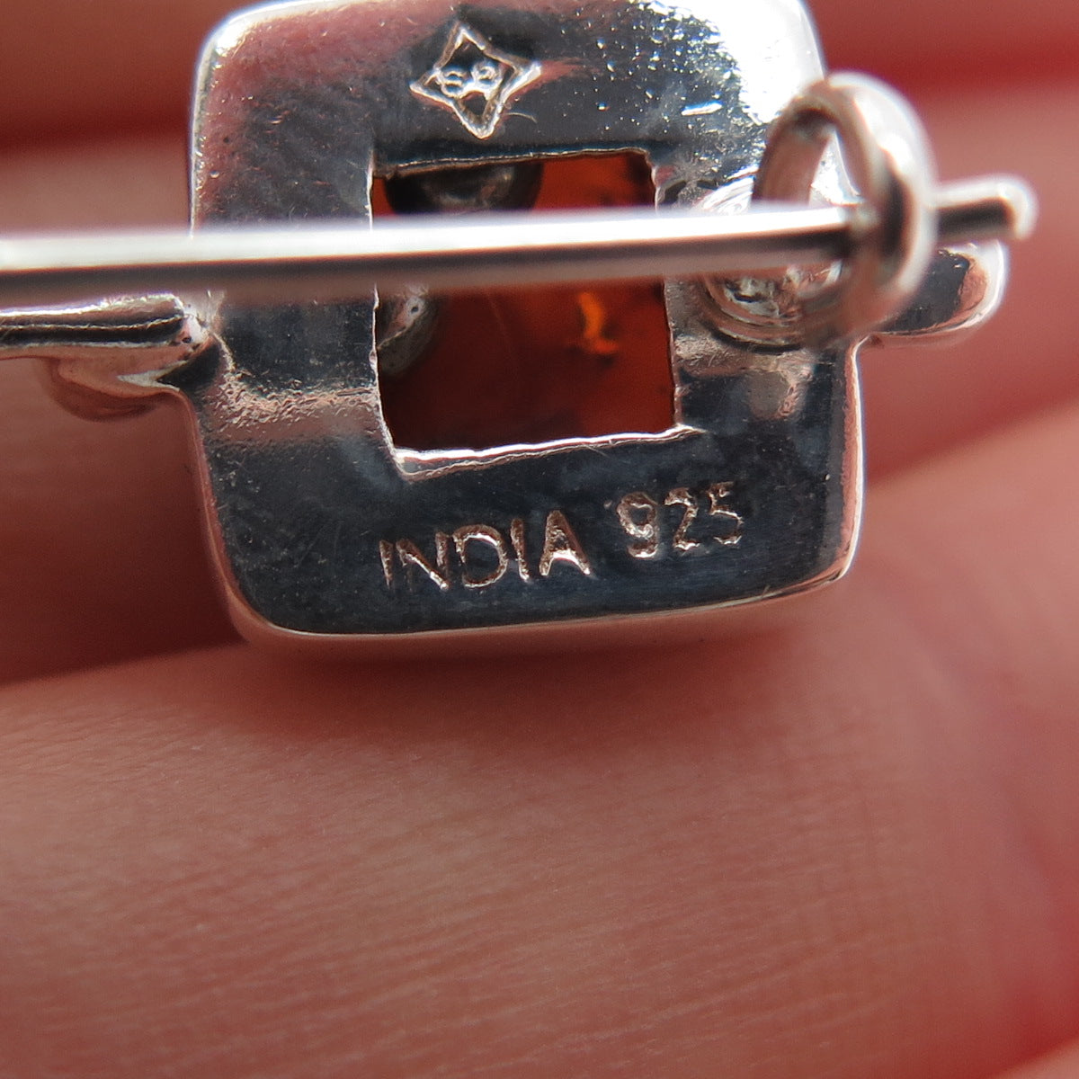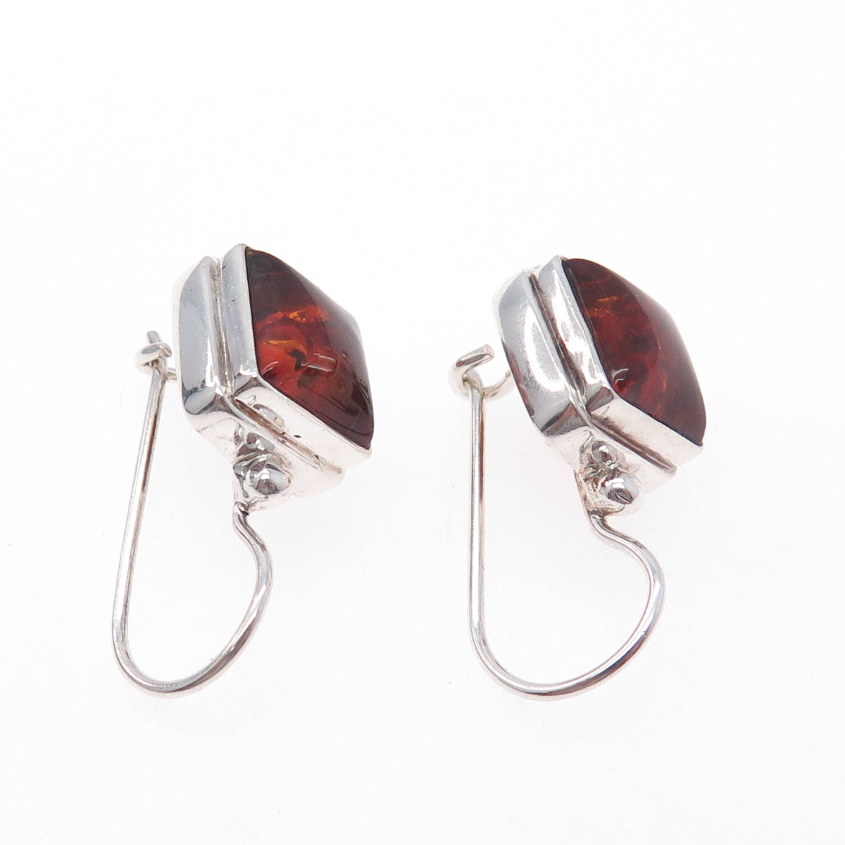 925 Sterling Silver Vintage Real Amber Modernist Earrings
