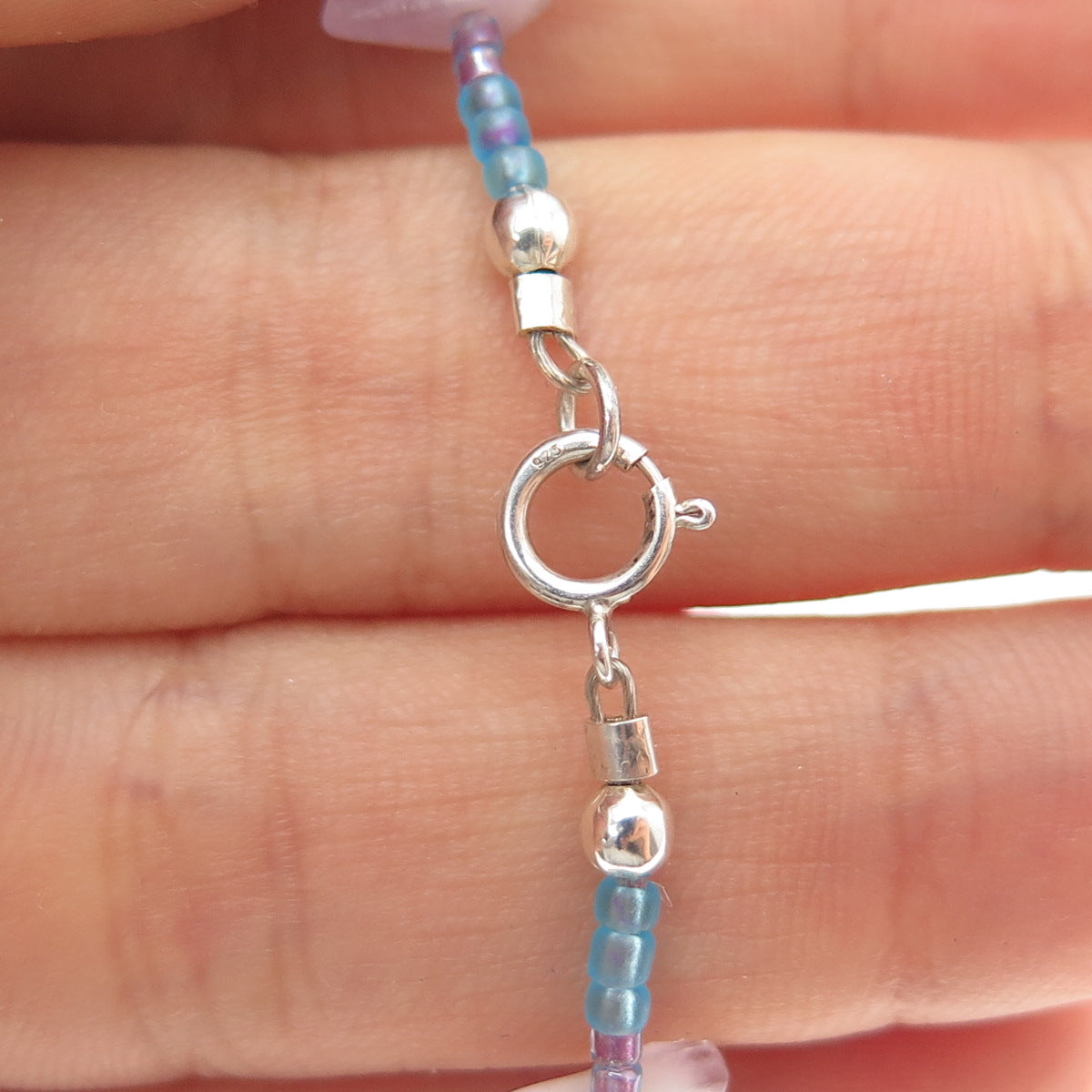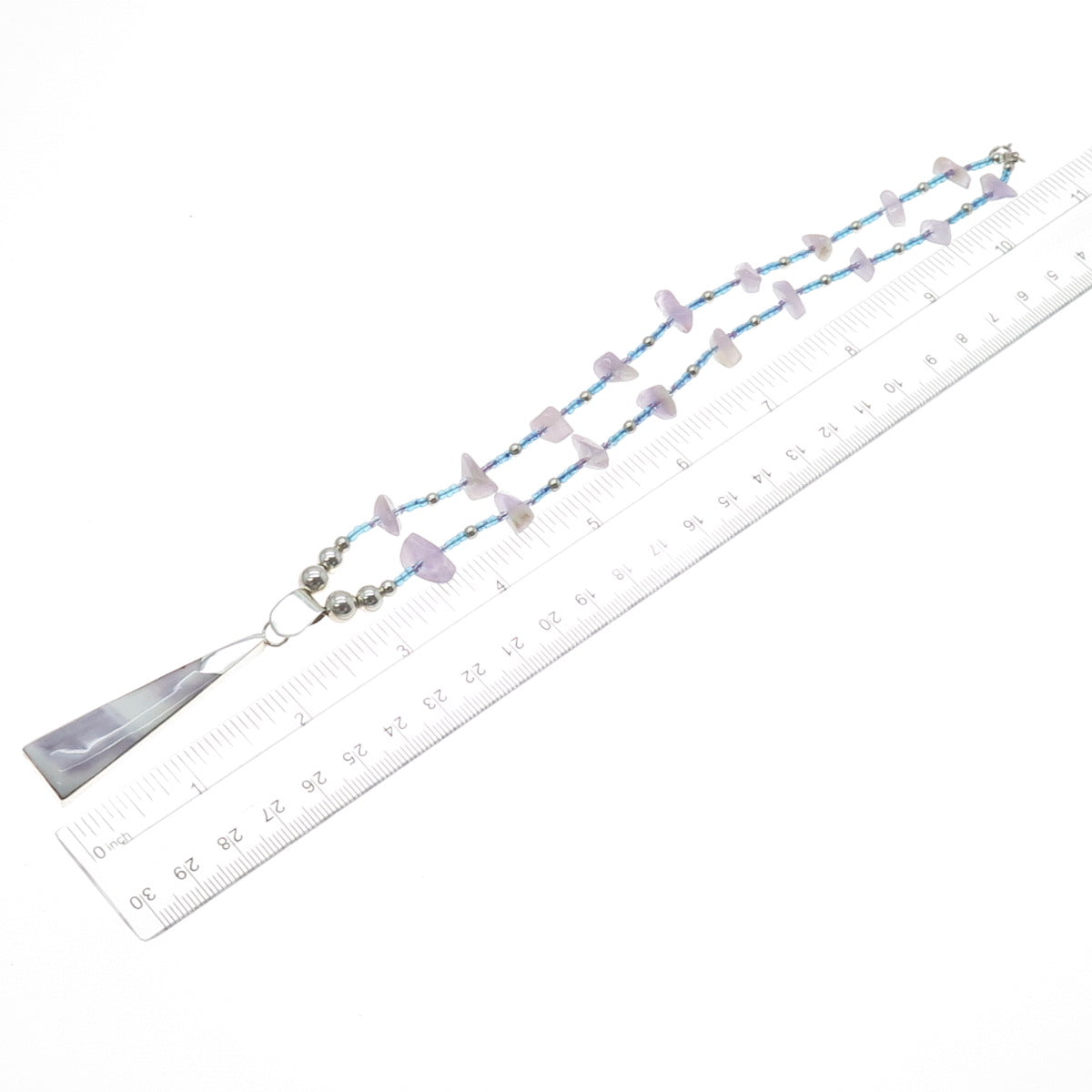 925 Sterling Silver Vintage Real Amethyst & Blue Spinel Beaded Necklace 18"