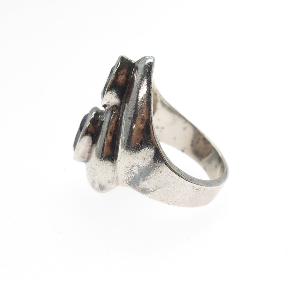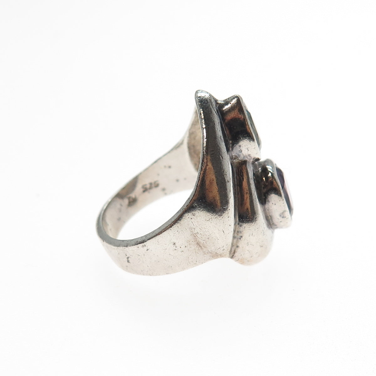 925 Sterling Silver Vintage Real Amethyst & Blue Topaz Modernist Ring Size 7