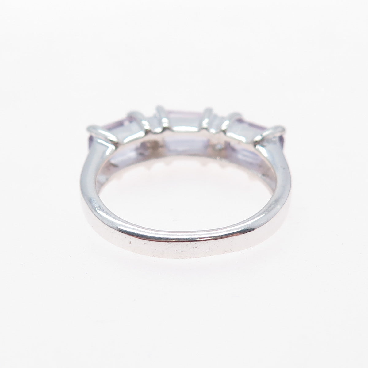 925 Sterling Silver Vintage Real Amethyst & C Z Ring Size 6