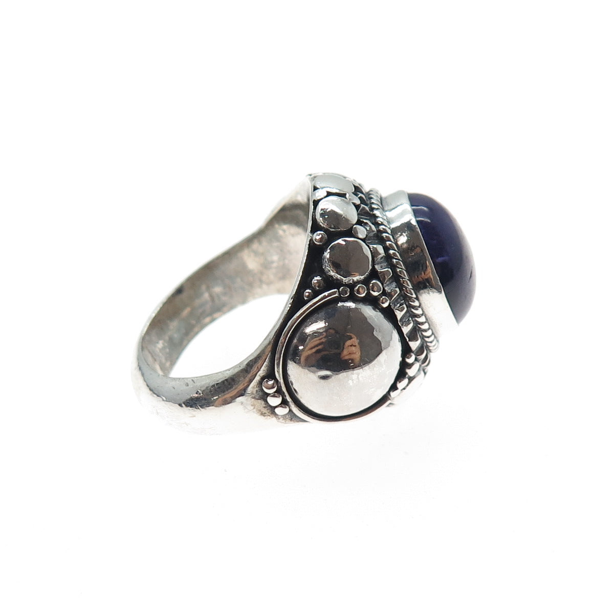 925 Sterling Silver Vintage Real Amethyst Dotted Oxidized Ring Size 8