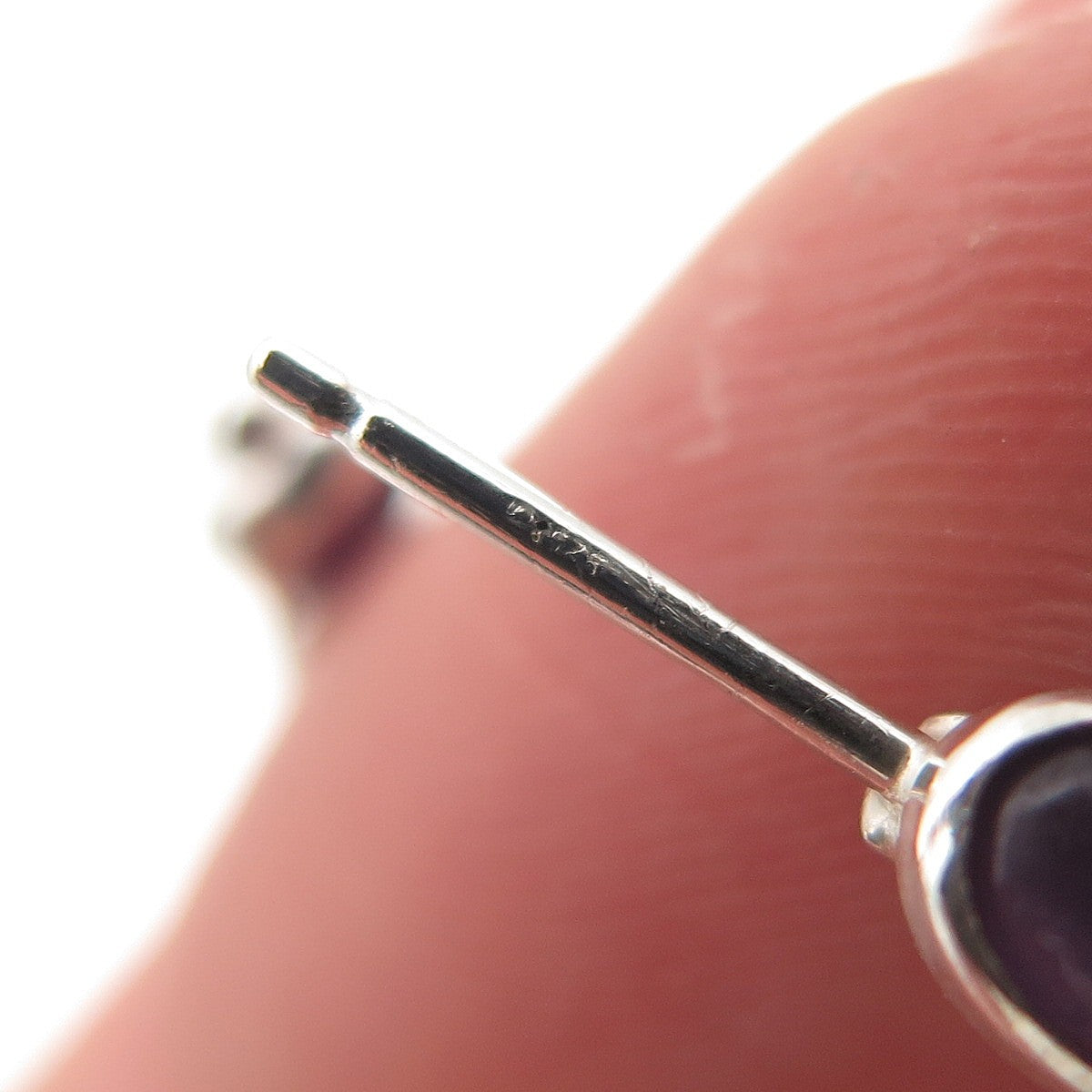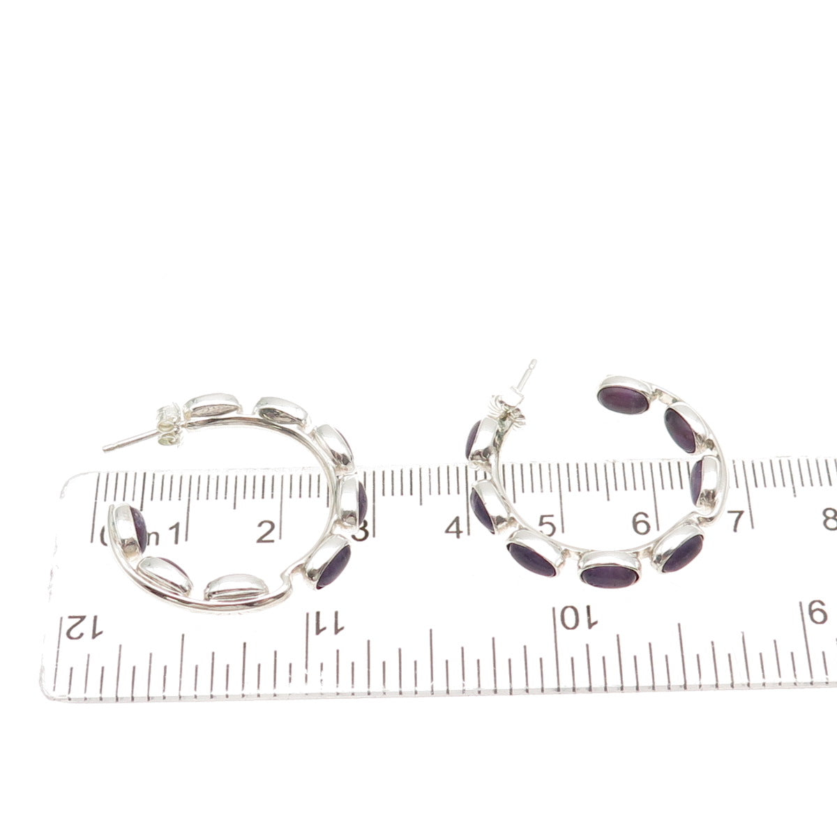 925 Sterling Silver Vintage Real Amethyst In & Out Hoop Earrings