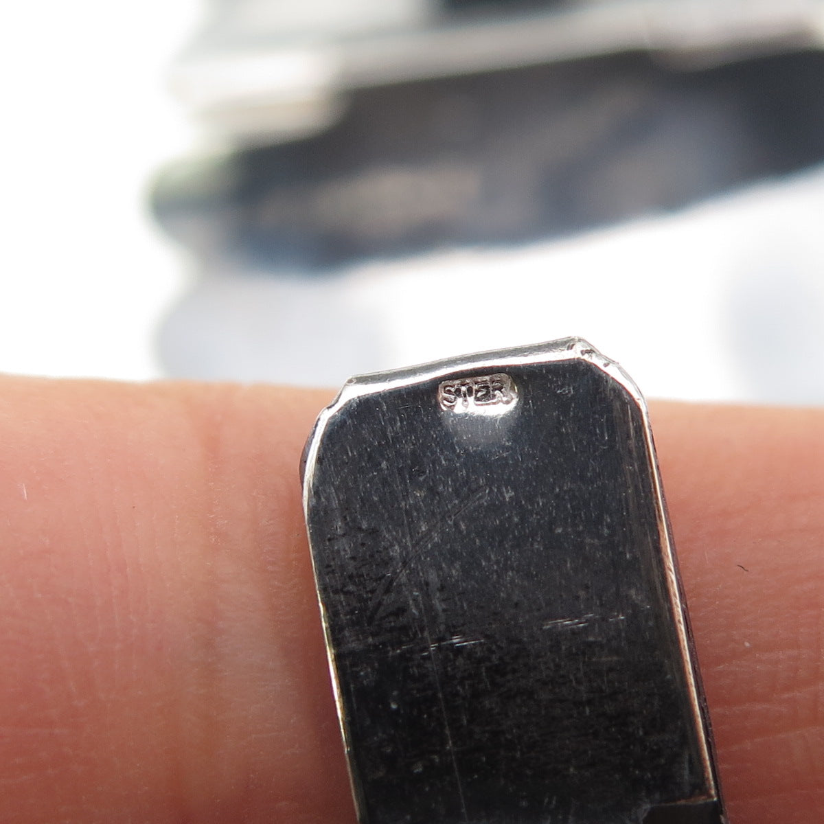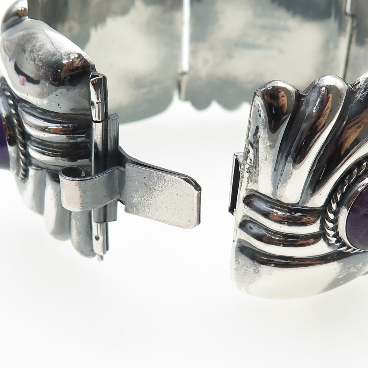925 Sterling Silver Vintage Real Amethyst Modernist Heavy 106.3g Bracelet 7.5"