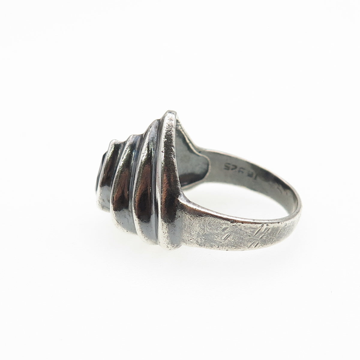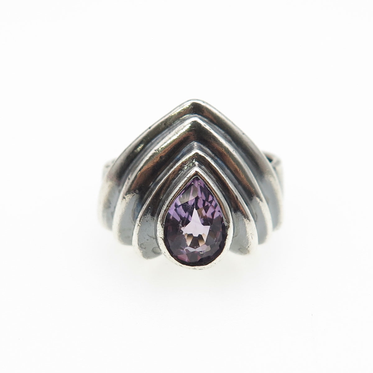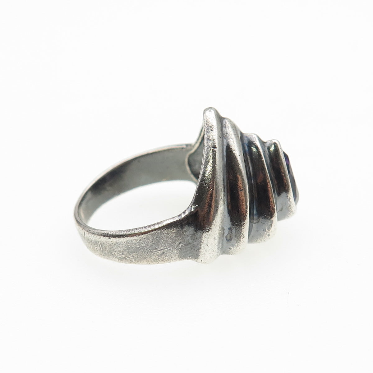 925 Sterling Silver Vintage Real Amethyst Modernist Oxidized Ring Size 7