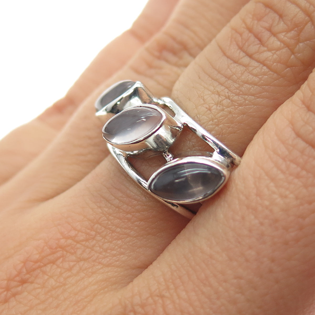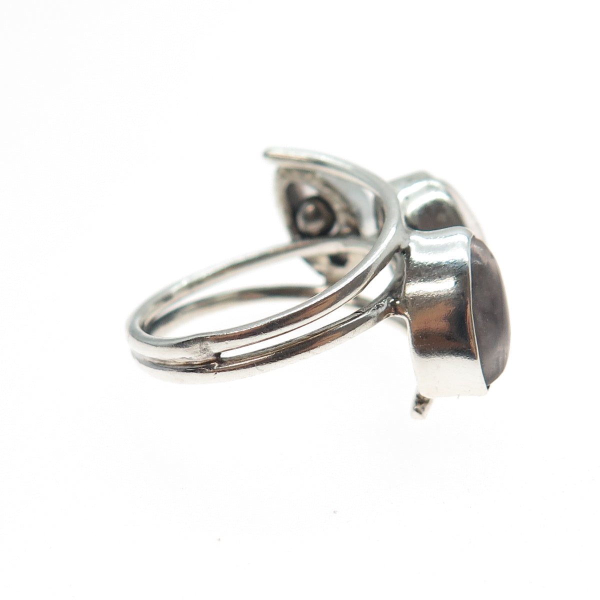 925 Sterling Silver Vintage Real Amethyst Modernist Ring Size 7