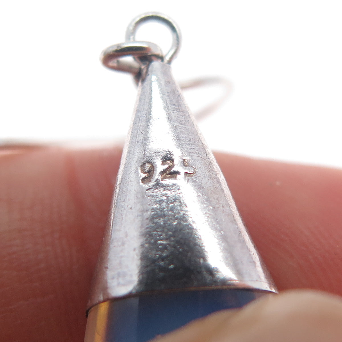 925 Sterling Silver Vintage Real Amethyst & Opalite Modernist Dangle Earrings