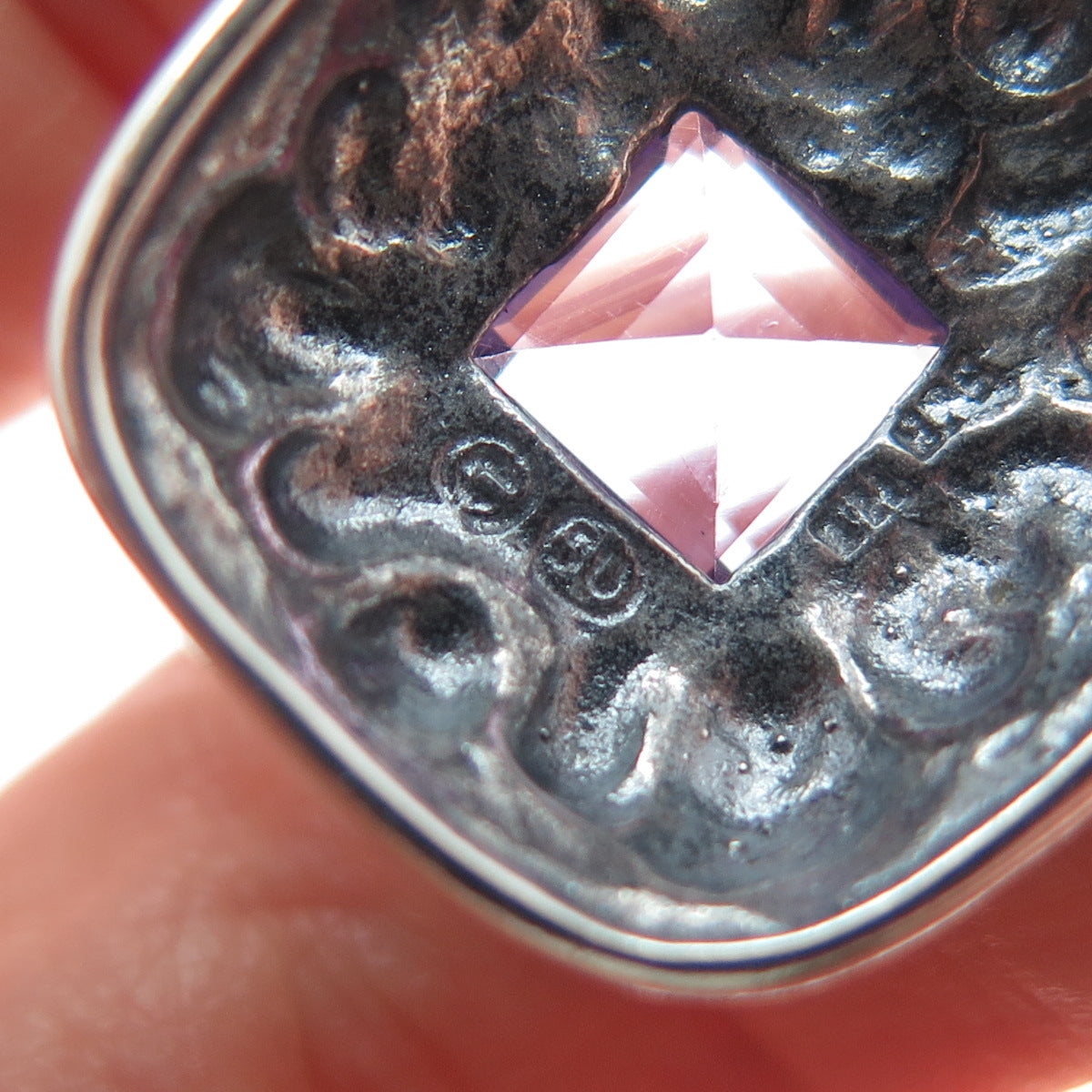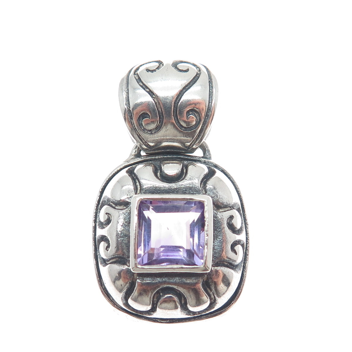 925 Sterling Silver Vintage Real Amethyst Ornate Oxidized Pendant
