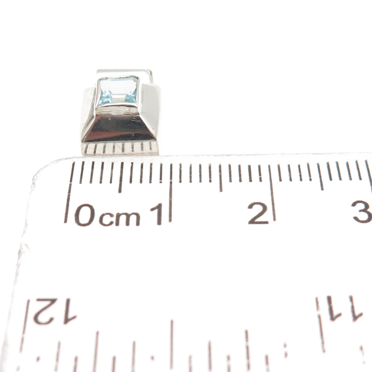925 Sterling Silver Vintage Real Asscher-Cut Blue Topaz Mini Slide Charm Pendant