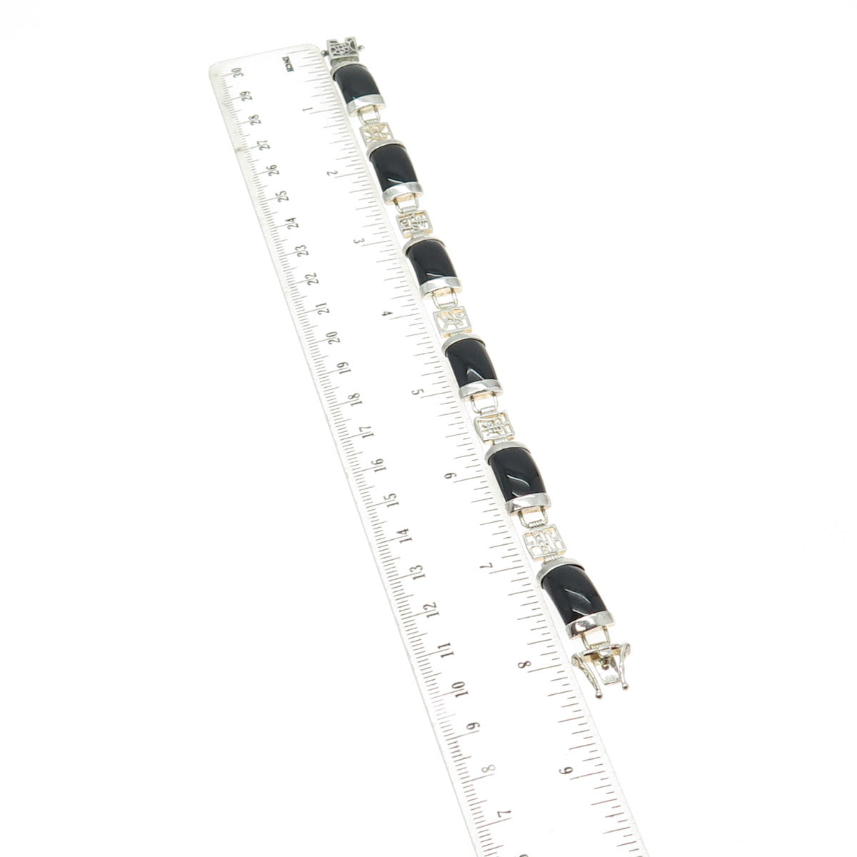 925 Sterling Silver Vintage Real Black Onyx Chinese Character Panel Bracelet 8"
