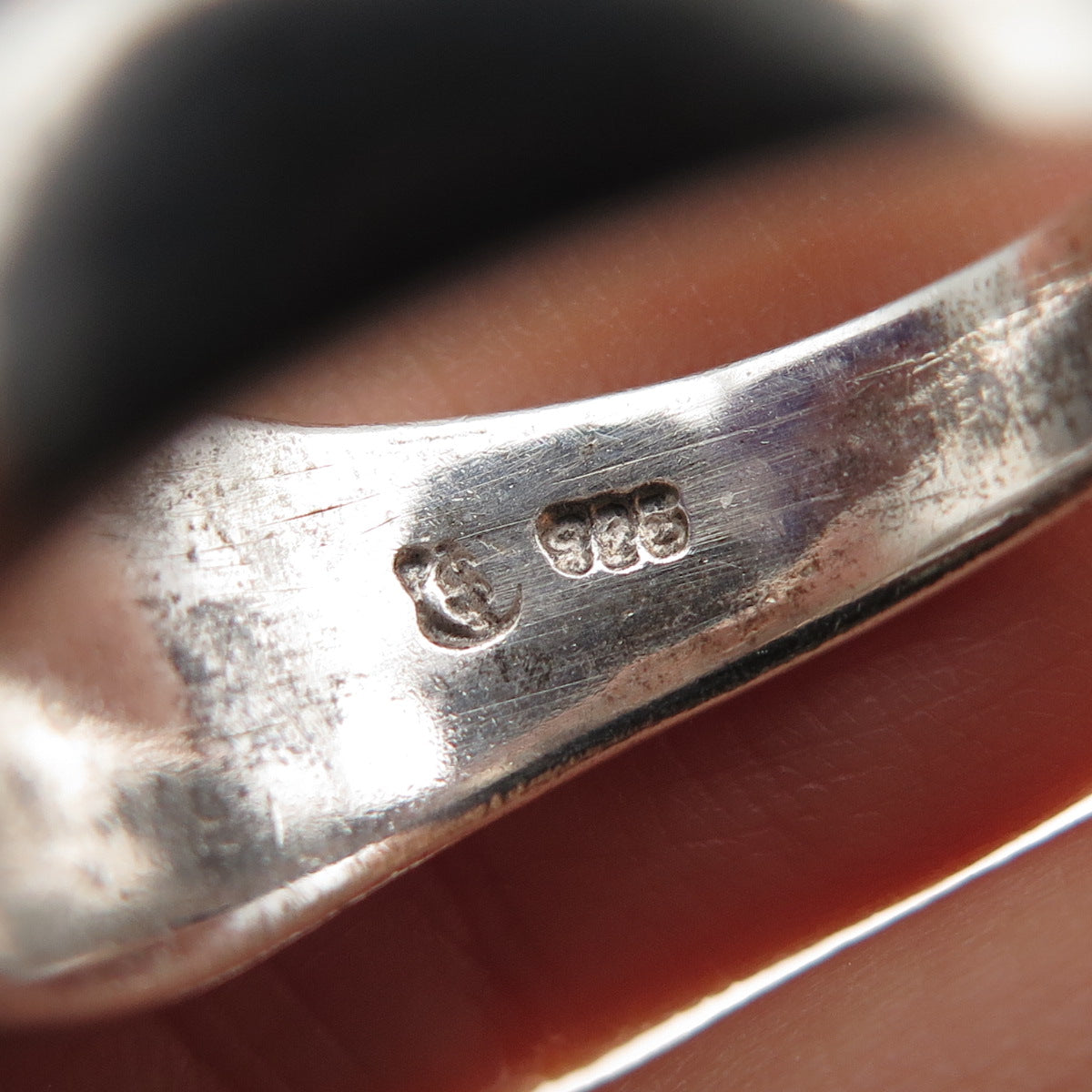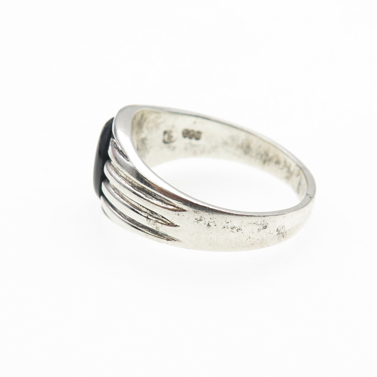 925 Sterling Silver Vintage Real Black Onyx Modernist Oxidized Ring Size 12