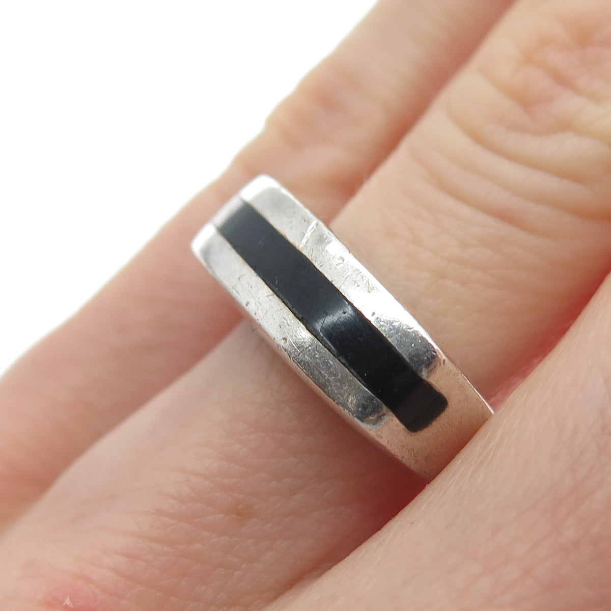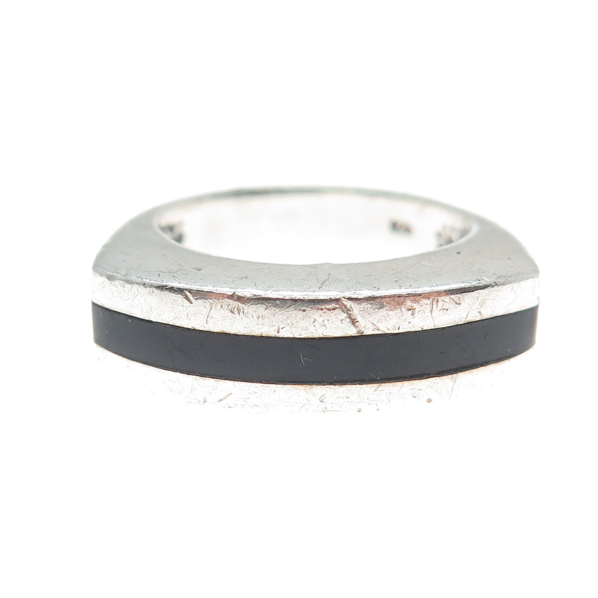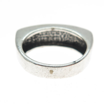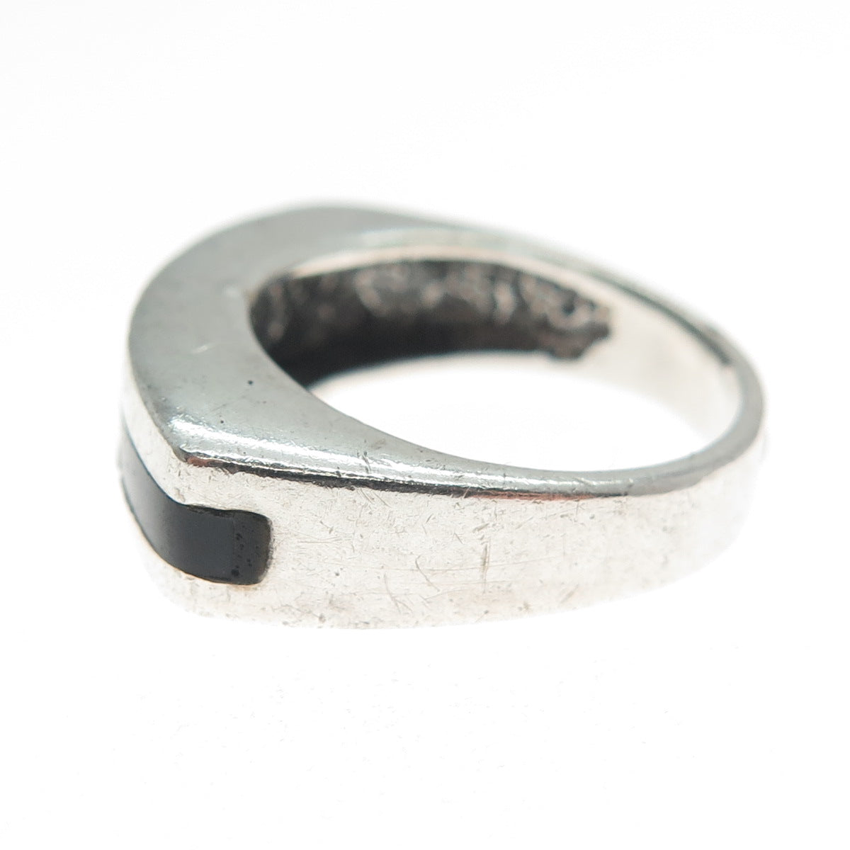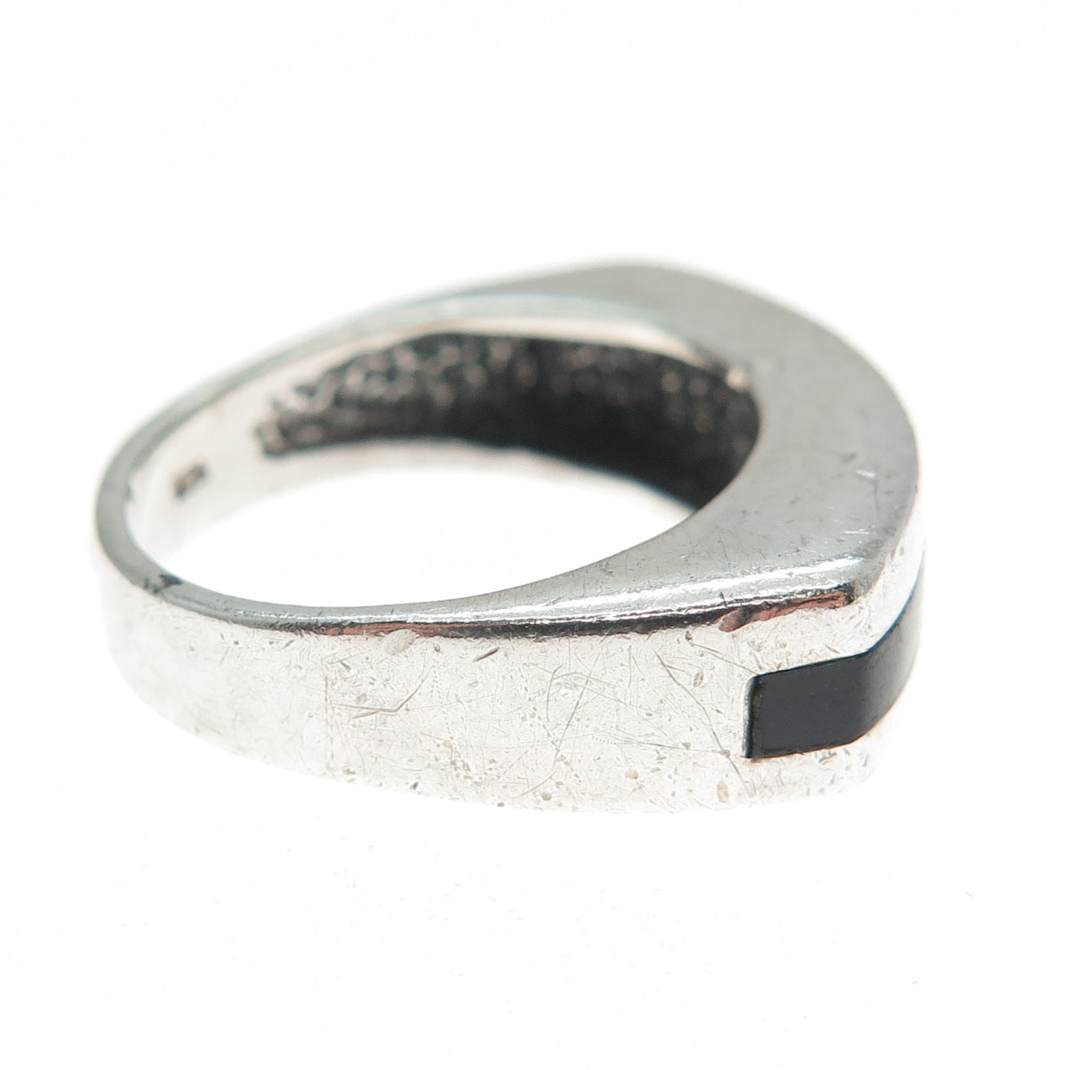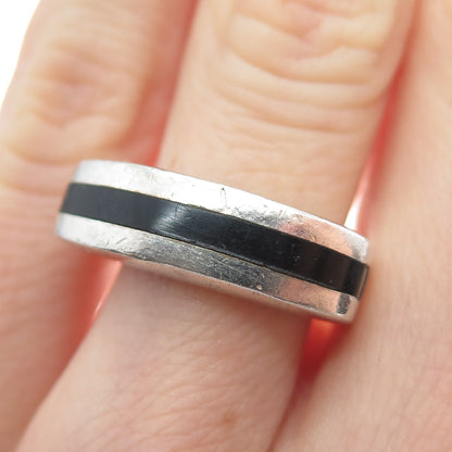 925 Sterling Silver Vintage Real Black Onyx Modernist Oxidized Ring Size 5.25