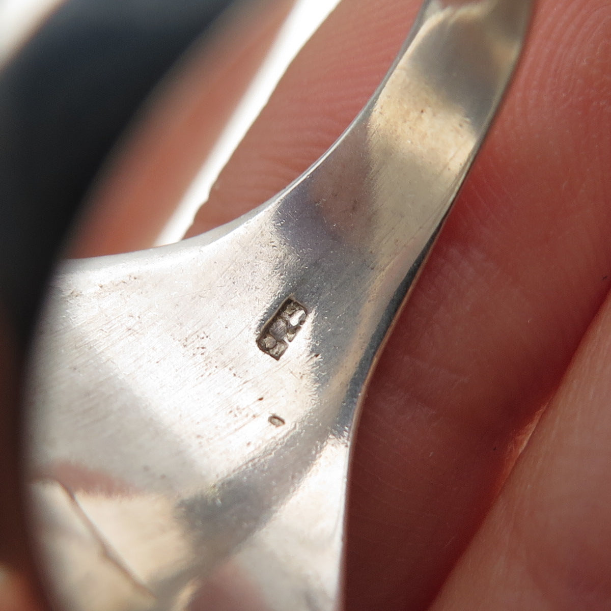 925 Sterling Silver Vintage Real Black Onyx Peace Symbol Ring Size 9.75