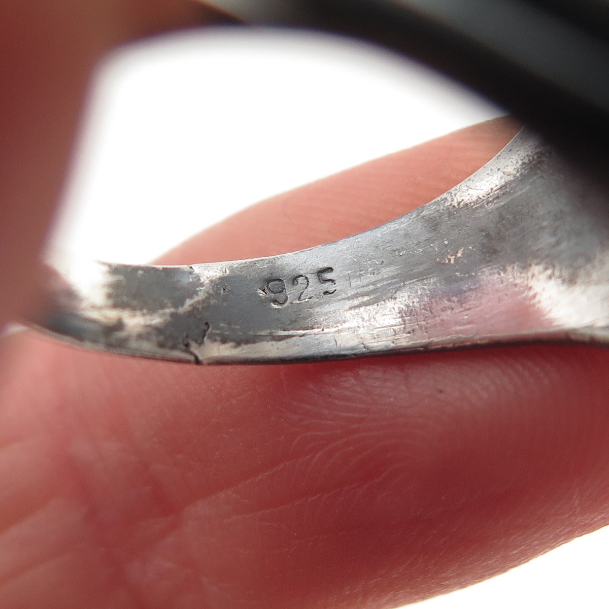 925 Sterling Silver Vintage Real Black Onyx Ribbed Oxidized Ring Size 9