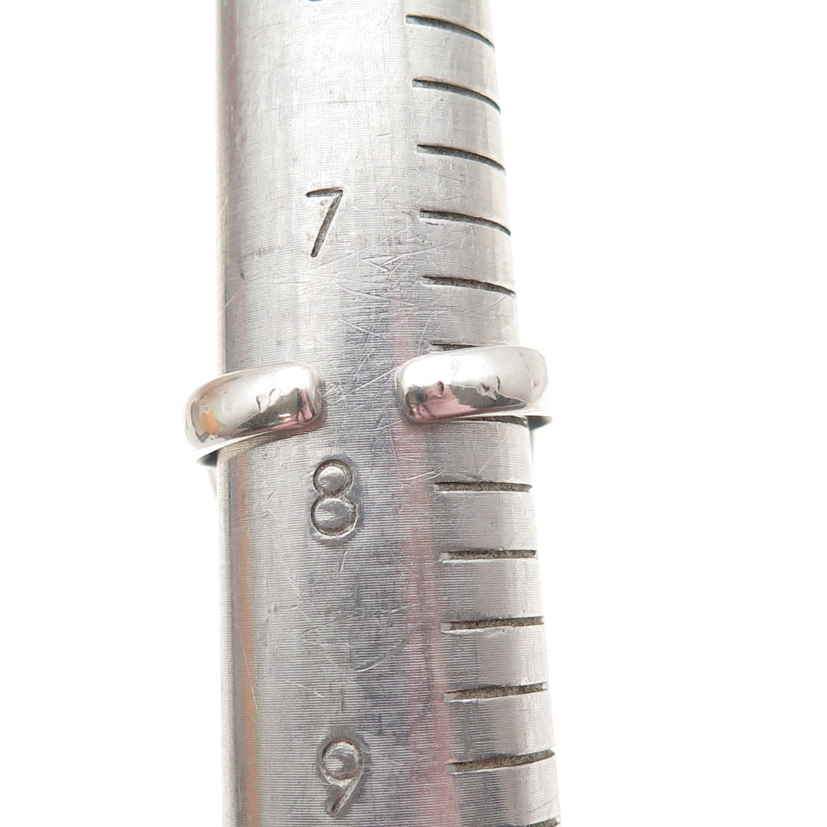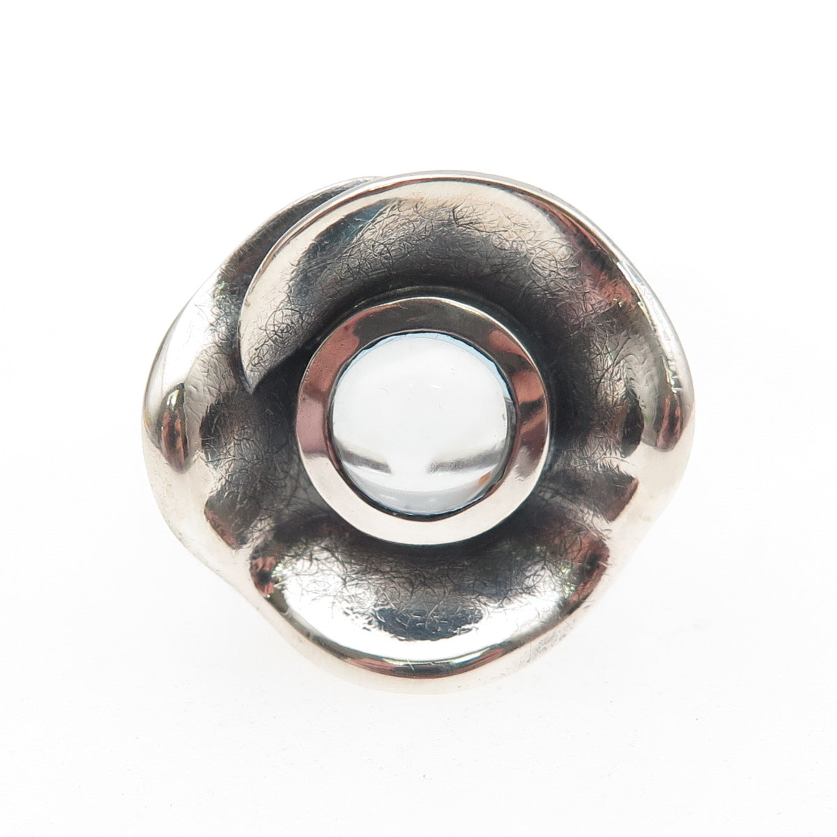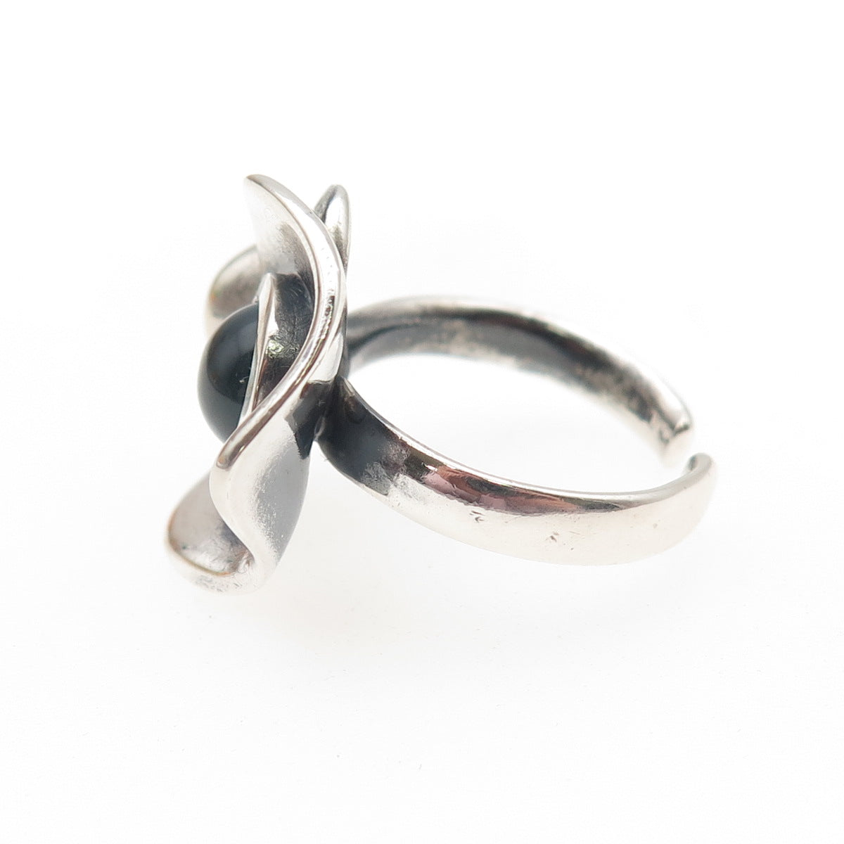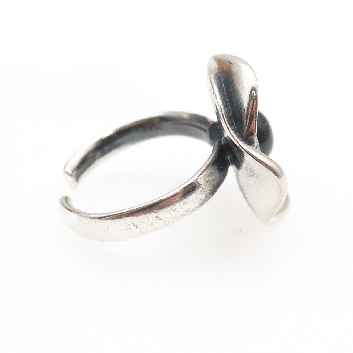 925 Sterling Silver Vintage Real Blue Topaz Flower Adjustable Ring Size 7.75