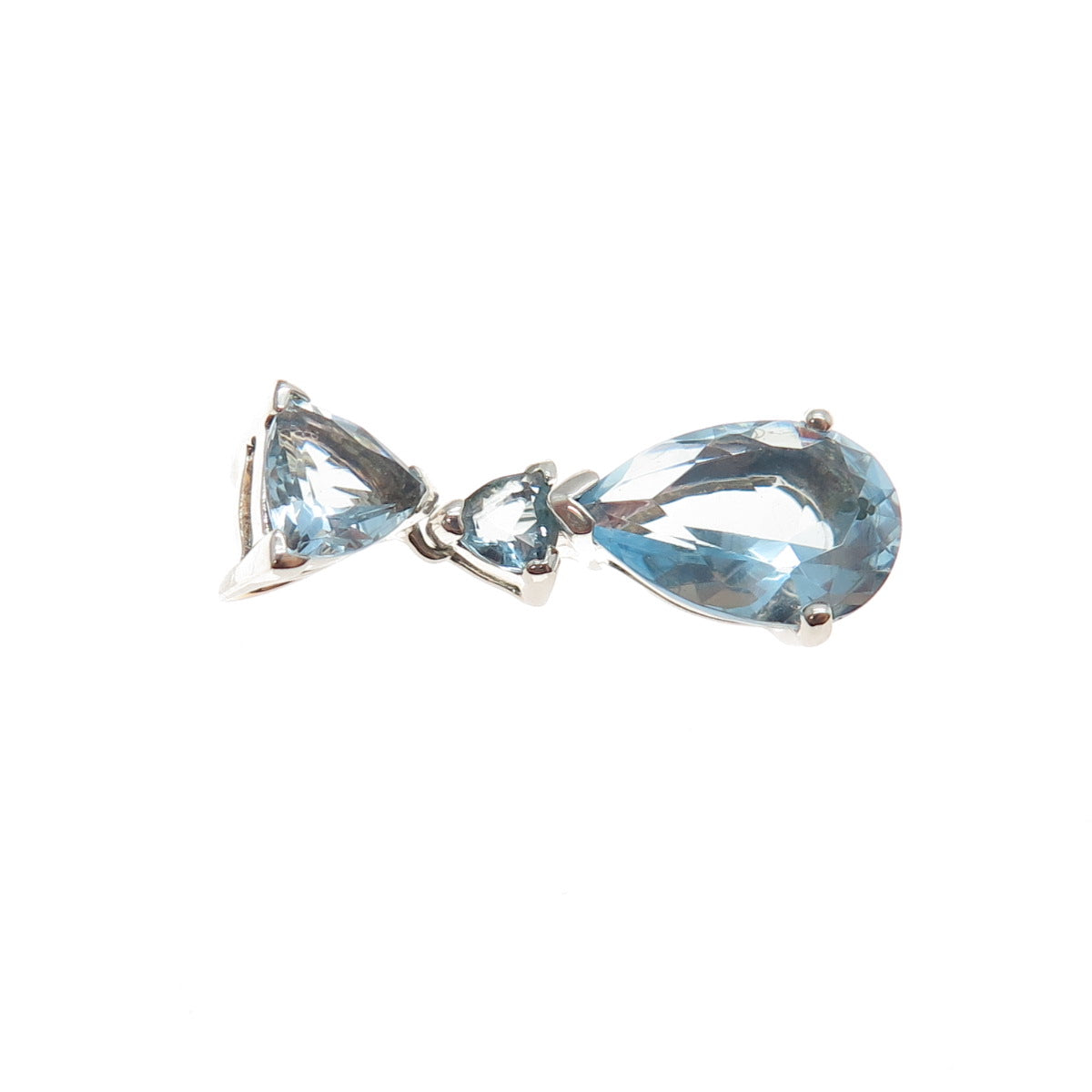 925 Sterling Silver Vintage Real Blue Topaz Mini Slide Charm Pendant