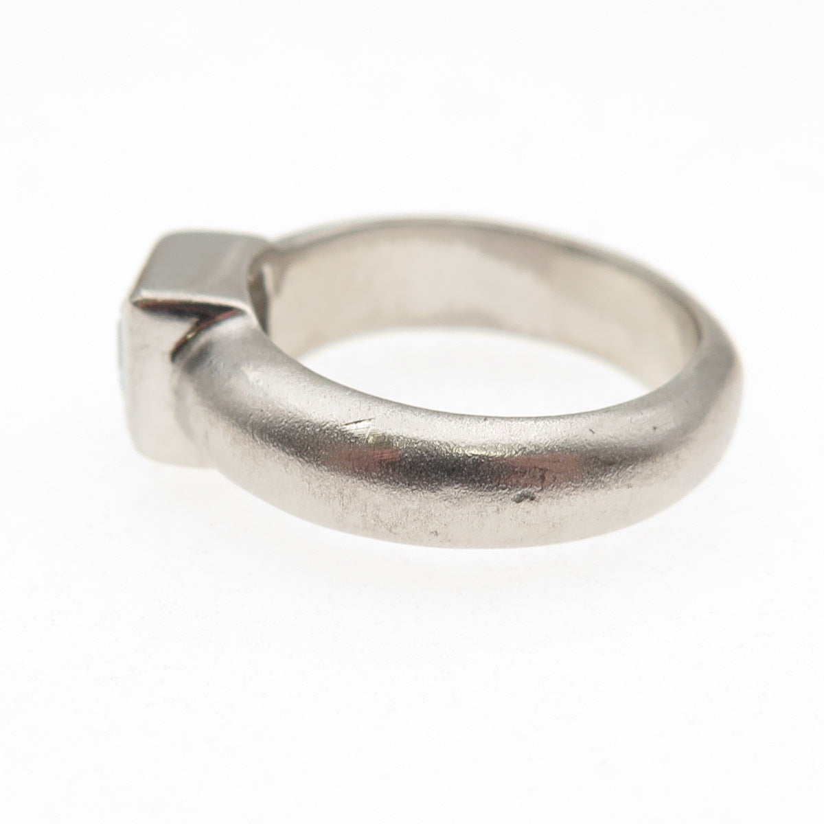 925 Sterling Silver Vintage Real Blue Topaz Modernist Ring Size 7