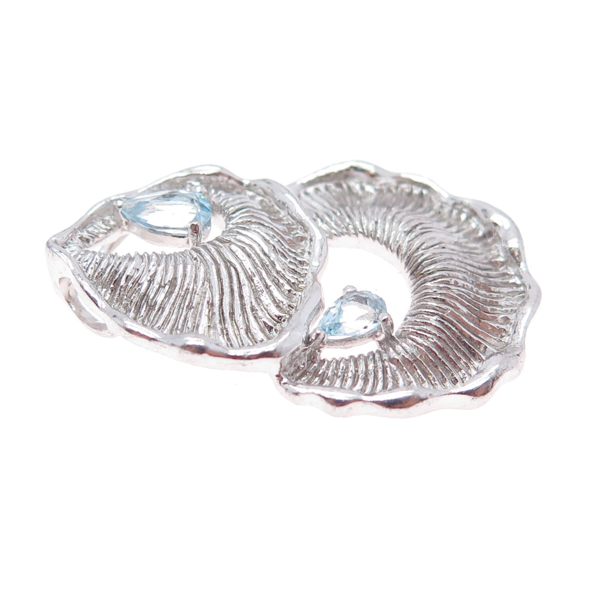 925 Sterling Silver Vintage Real Blue Topaz Modernist Slide Pendant