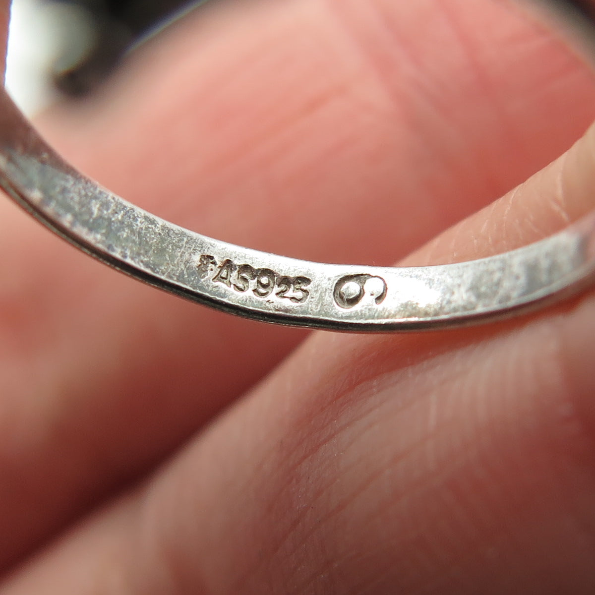 925 Sterling Silver Vintage Real Cabochon Amethyst Oxidized Ring Size 5.75