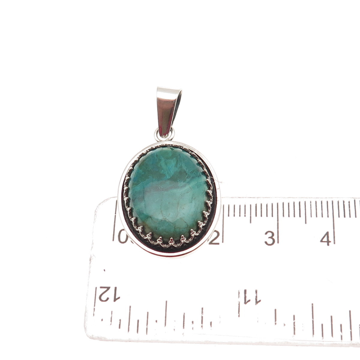 925 Sterling Silver Vintage Real Cabochon Chrysocolla Charm Pendant