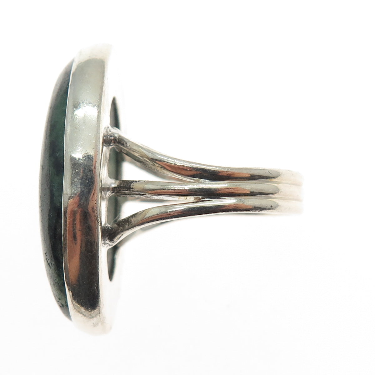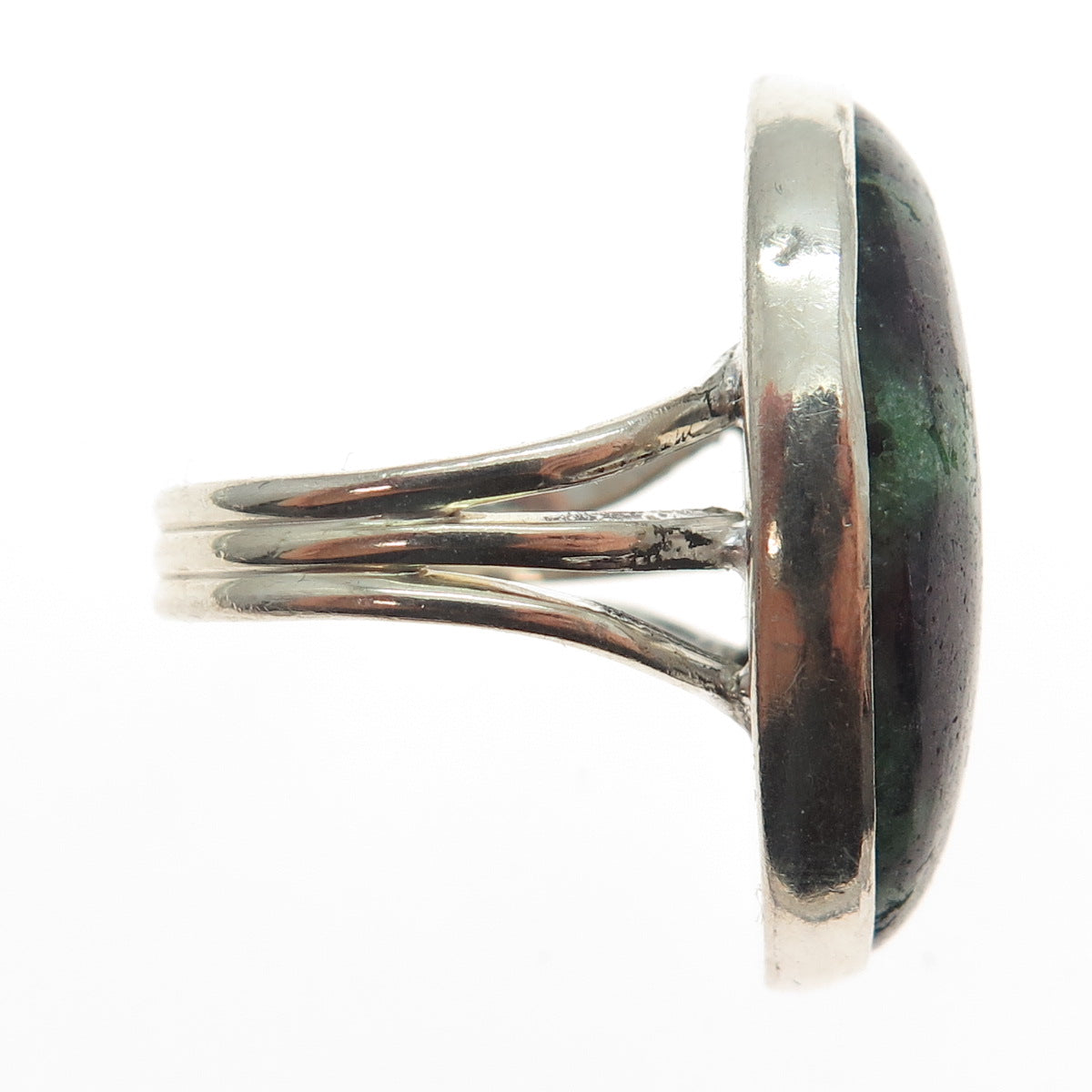 925 Sterling Silver Vintage Real Cabochon Zoisite Ruby Modernist Ring Size 8.25