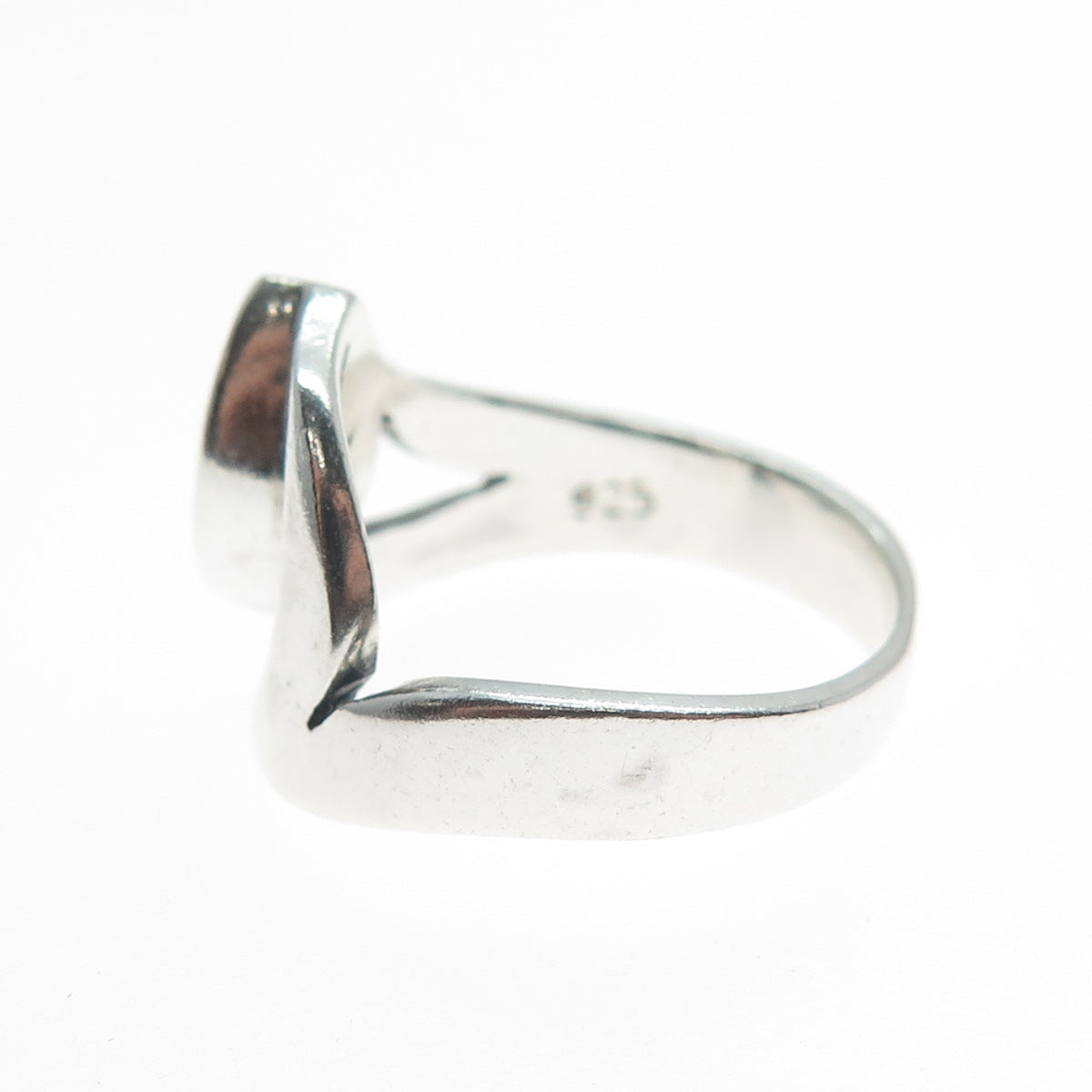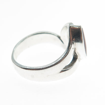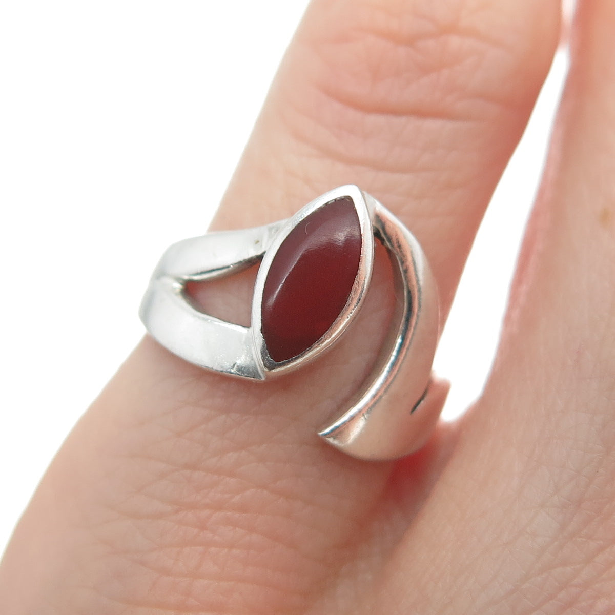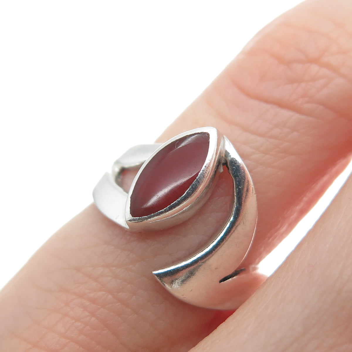 925 Sterling Silver Vintage Real Carnelian Modernist Ring Size 4.75