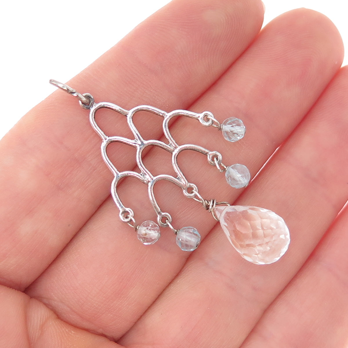 925 Sterling Silver Vintage Real Clear Quartz & Blue Topaz Chandelier Pendant
