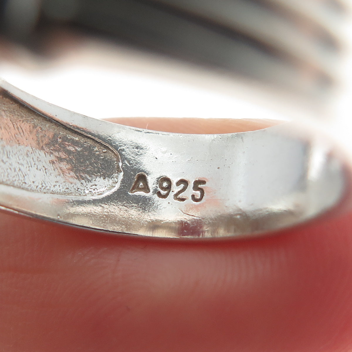 925 Sterling Silver Vintage Real Emerald-Cut Amethyst Gem Column Ring Size 7.75