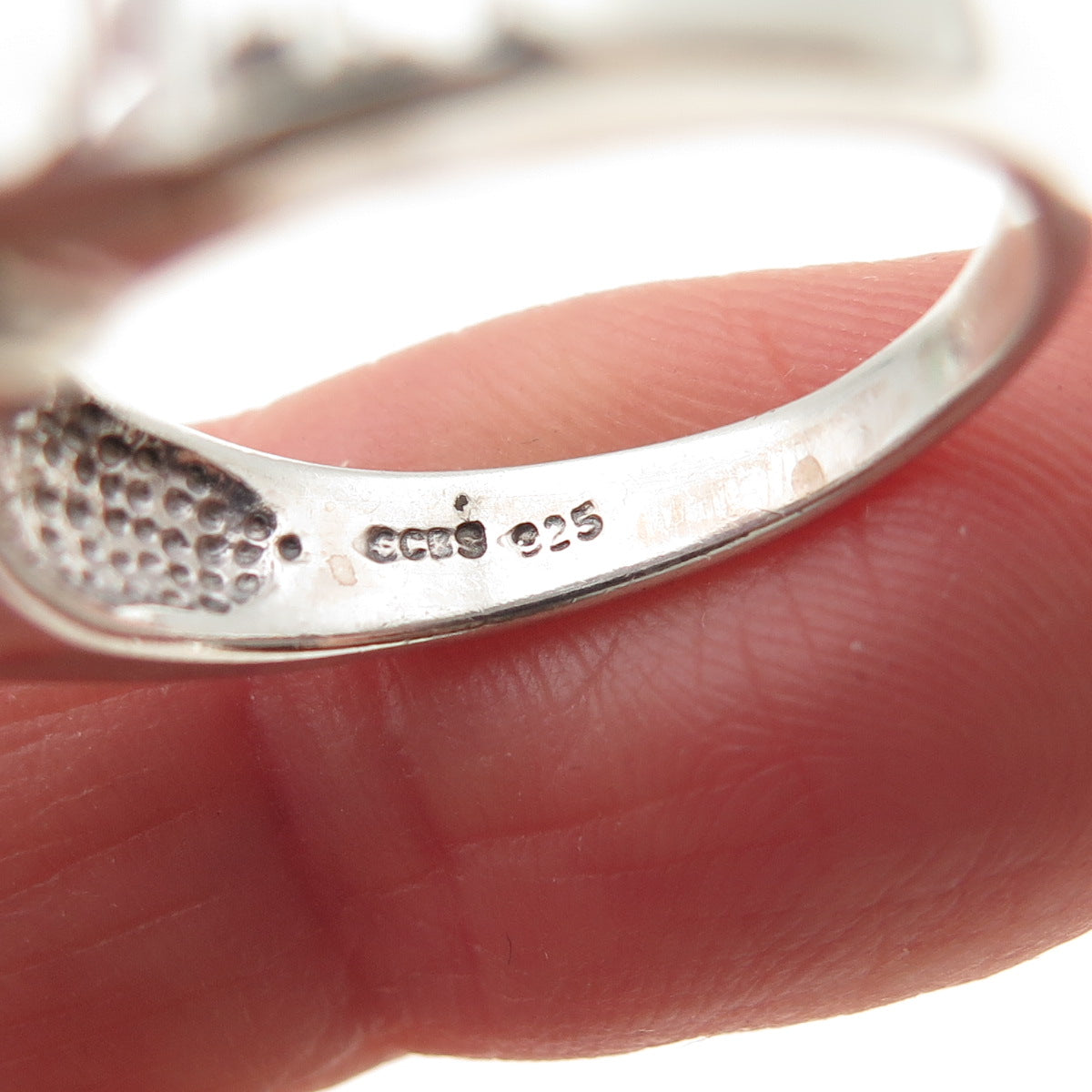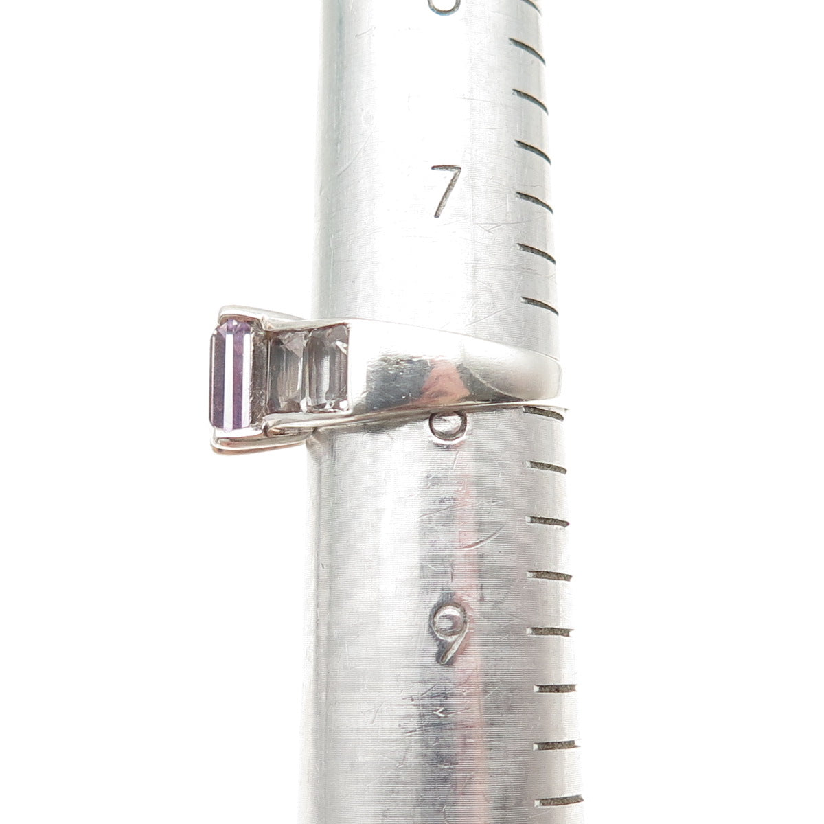 925 Sterling Silver Vintage Real Emerald-Cut Amethyst & White Topaz Ring Size 8