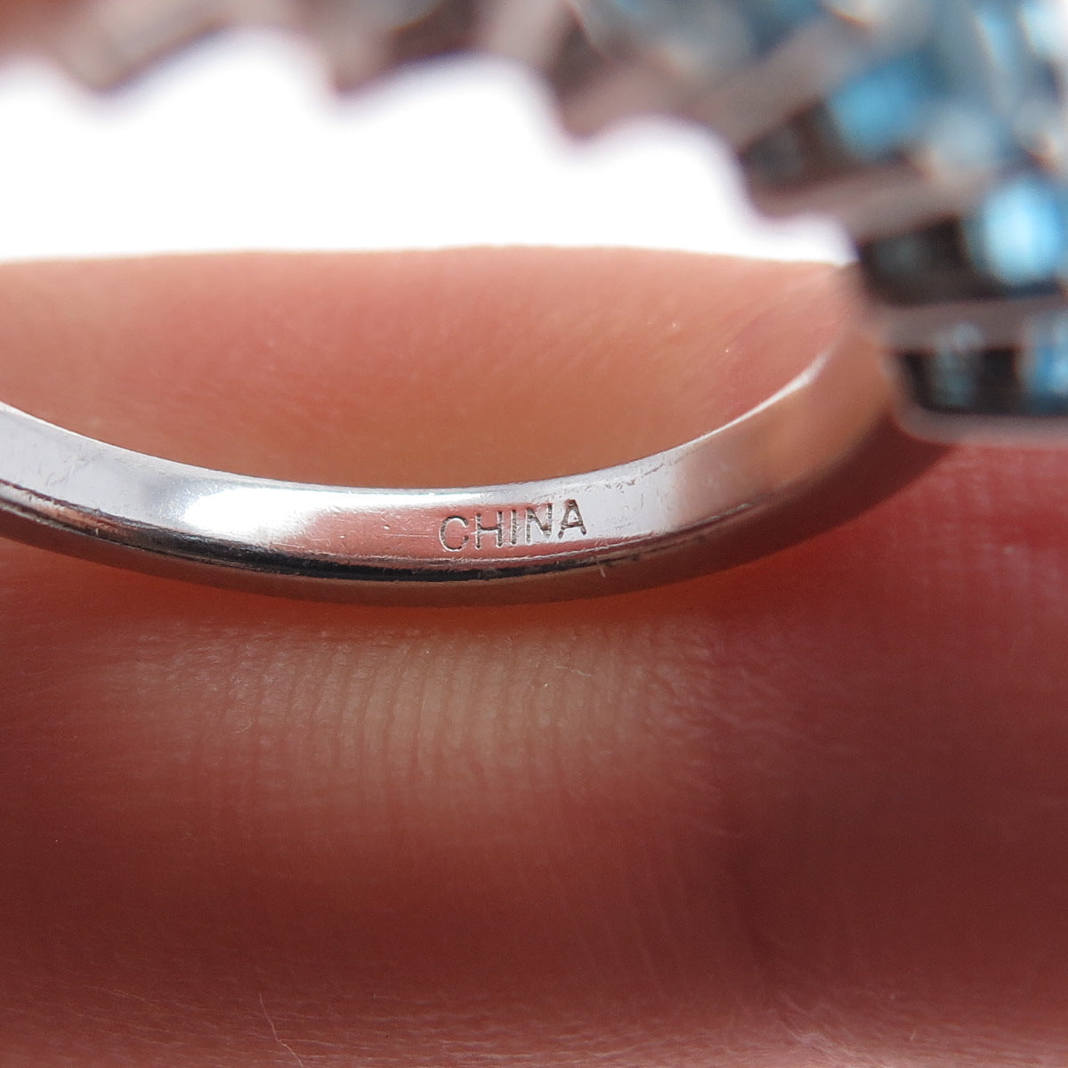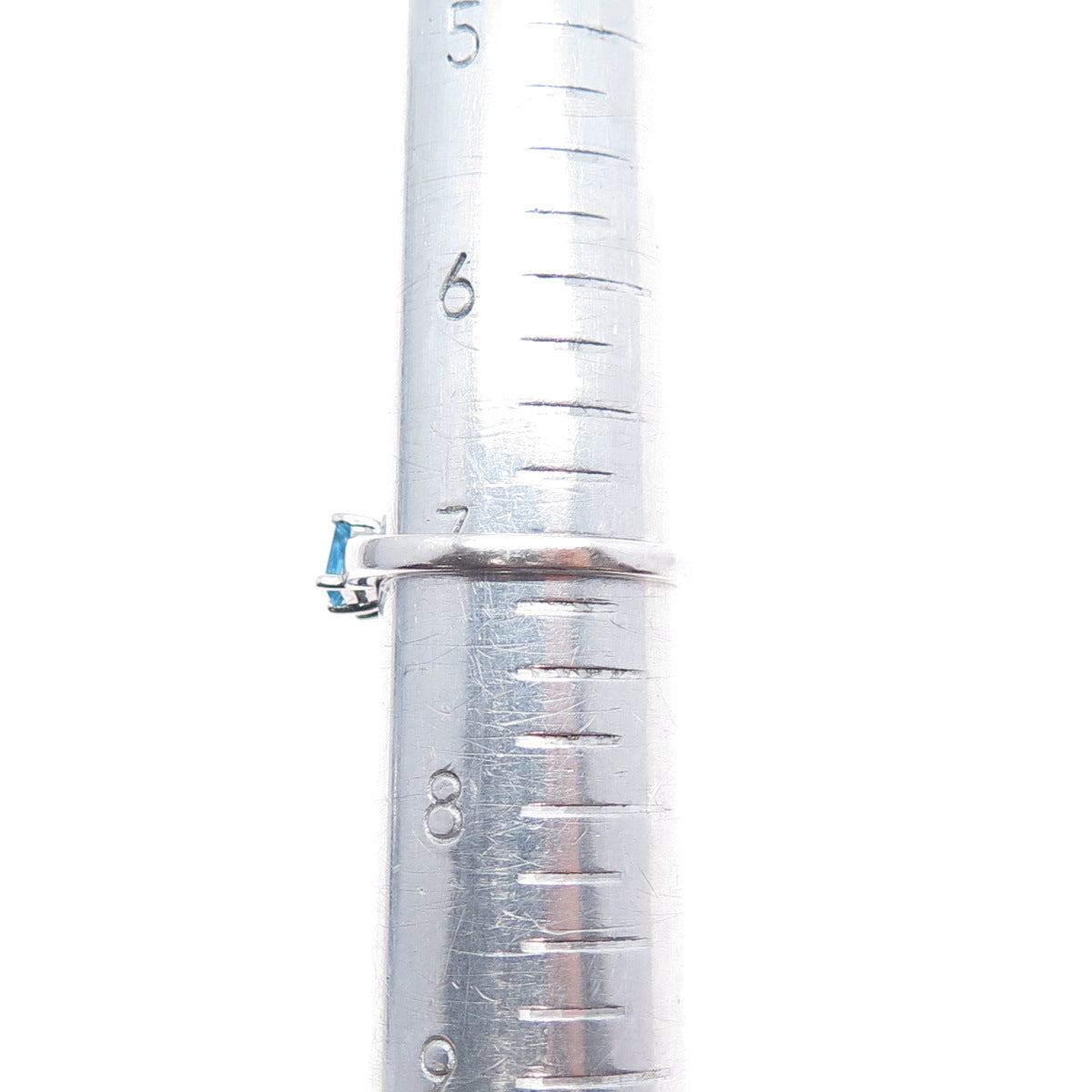 925 Sterling Silver Vintage Real Emerald-Cut Blue Topaz Ring Size 7