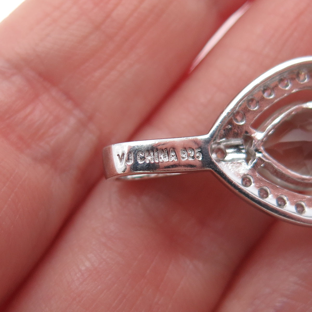 925 Sterling Silver Vintage Real Green Amethyst & C Z Teardrop Charm Pendant