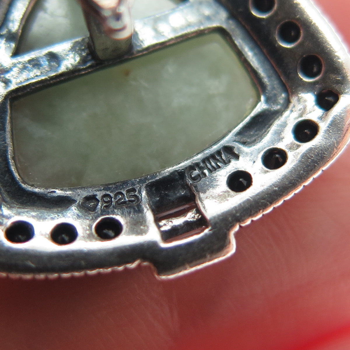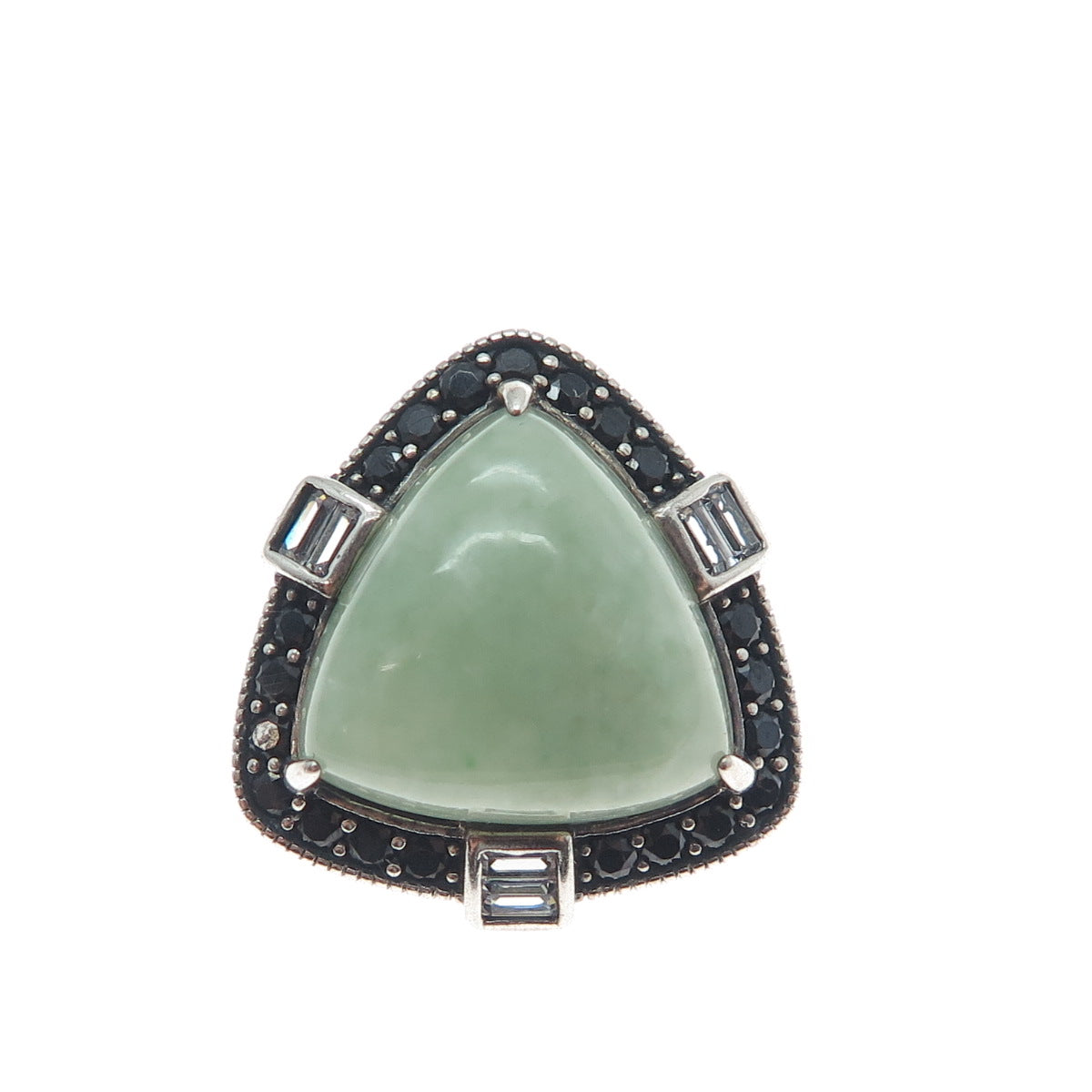 925 Sterling Silver Vintage Real Jade Black Spinel & C Z Triangle Pendant