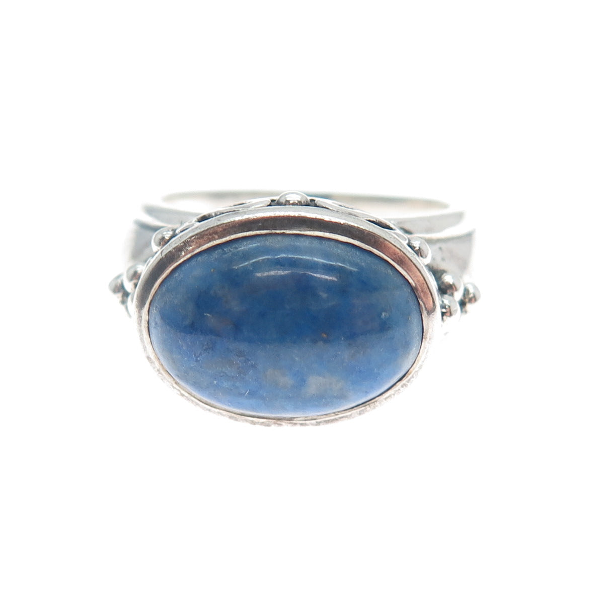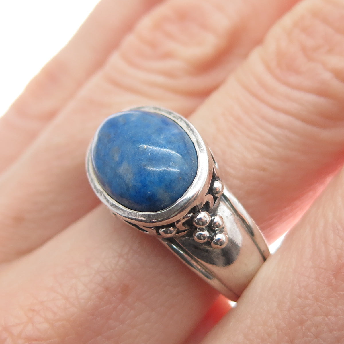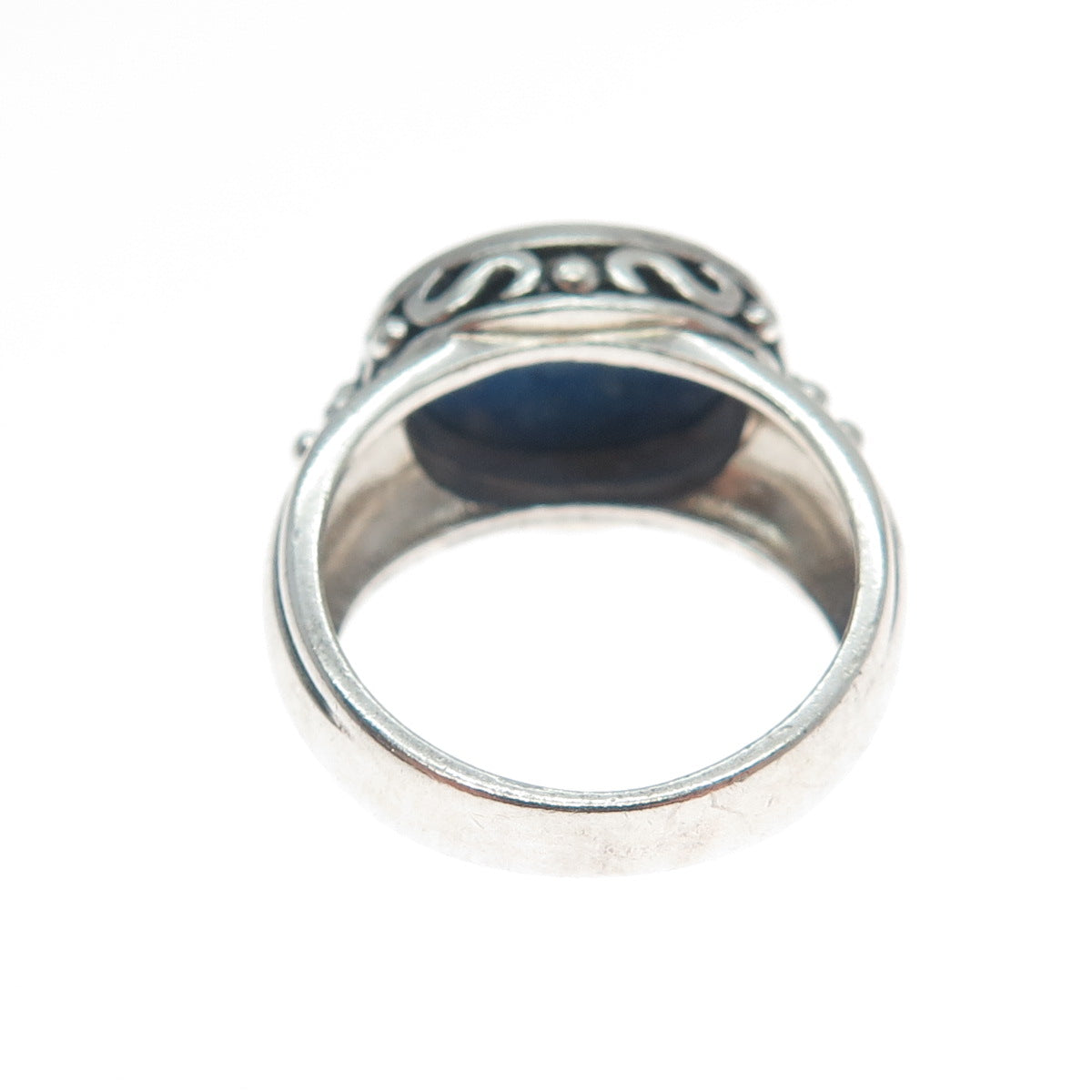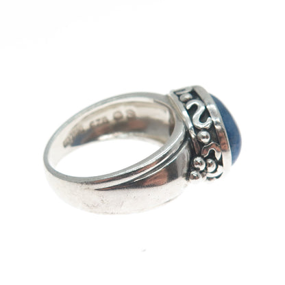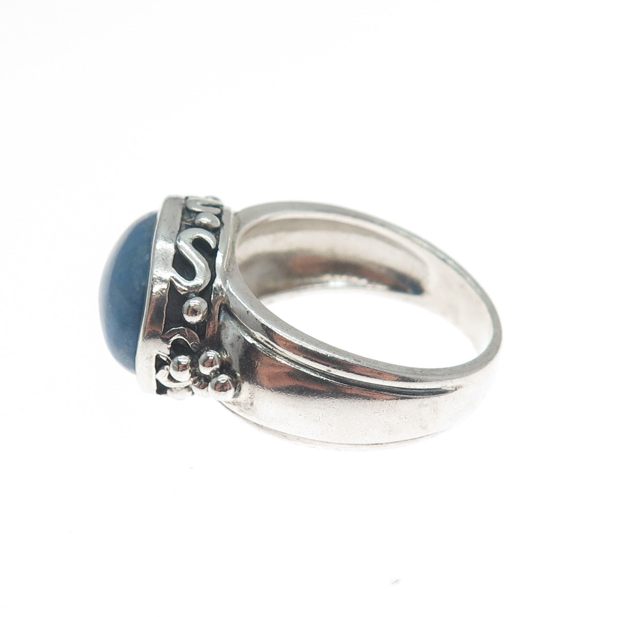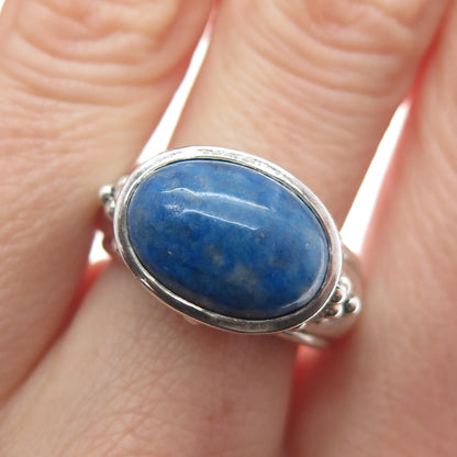 925 Sterling Silver Vintage Real Lapis Lazuli Gem Beaded Swirl Ring Size 7.25