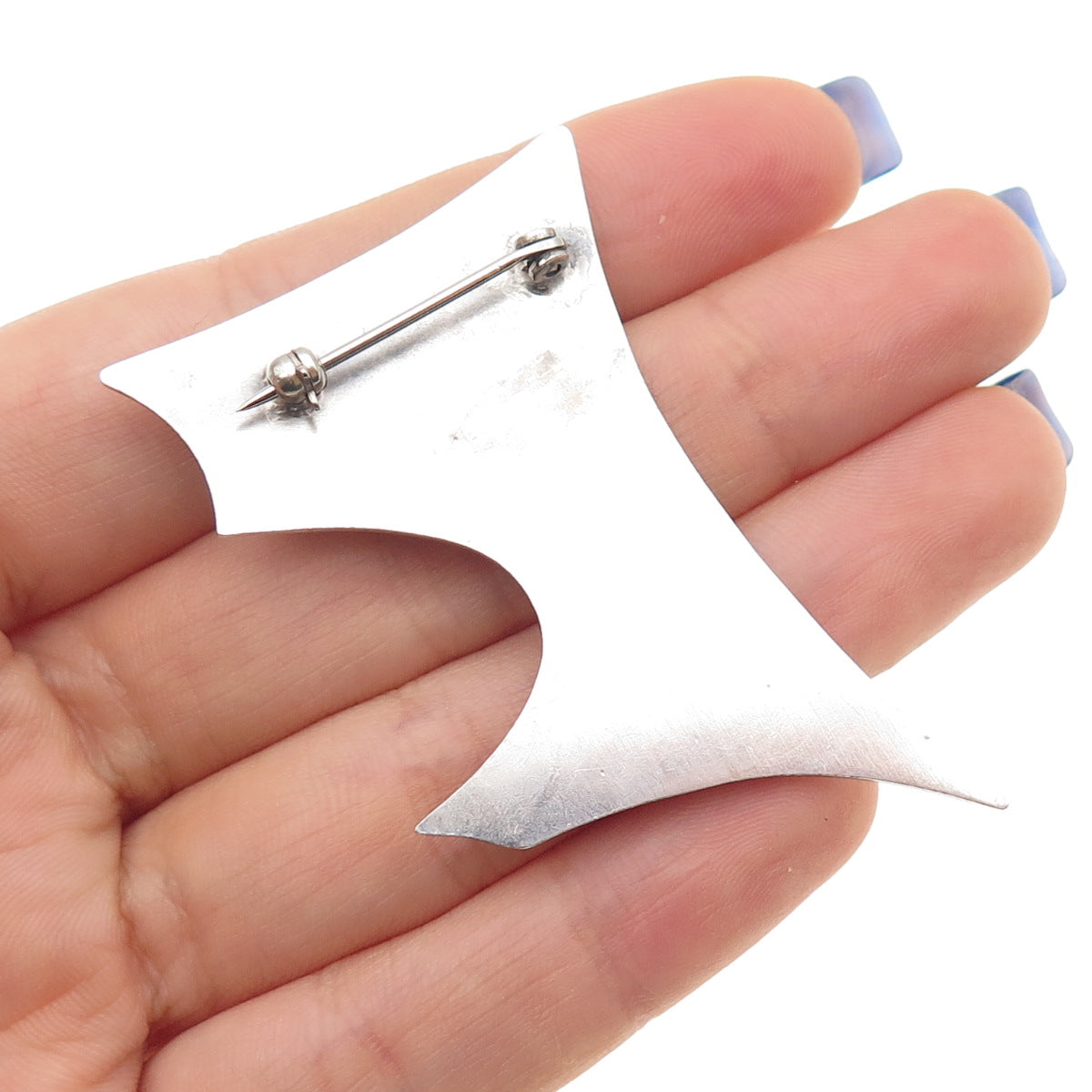 925 Sterling Silver Vintage Real Lapis Lazuli Modernist Pin Brooch