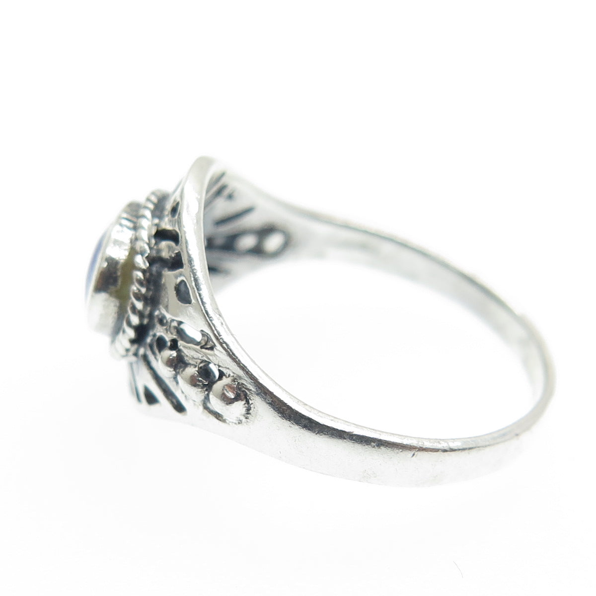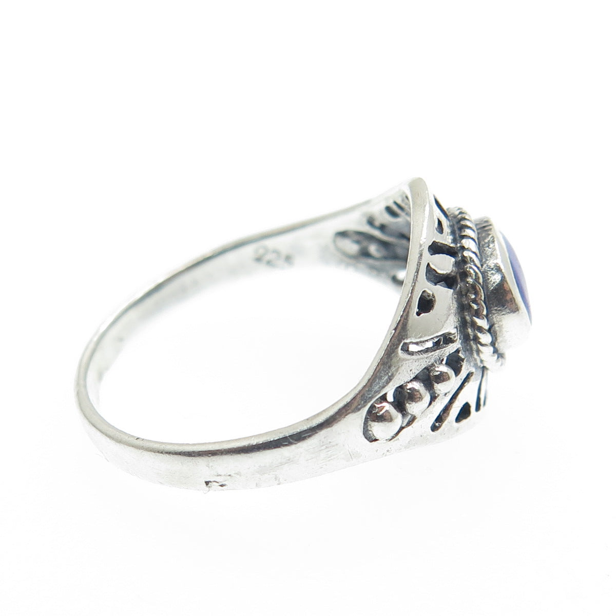 925 Sterling Silver Vintage Real Lapis Lazuli Modernist Ring Size 6.5