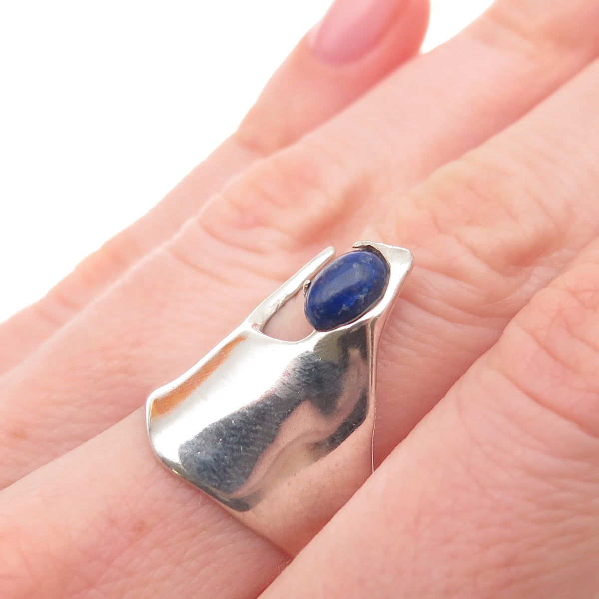 925 Sterling Silver Vintage Real Lapis Lazuli Modernist Ring Size 6.75