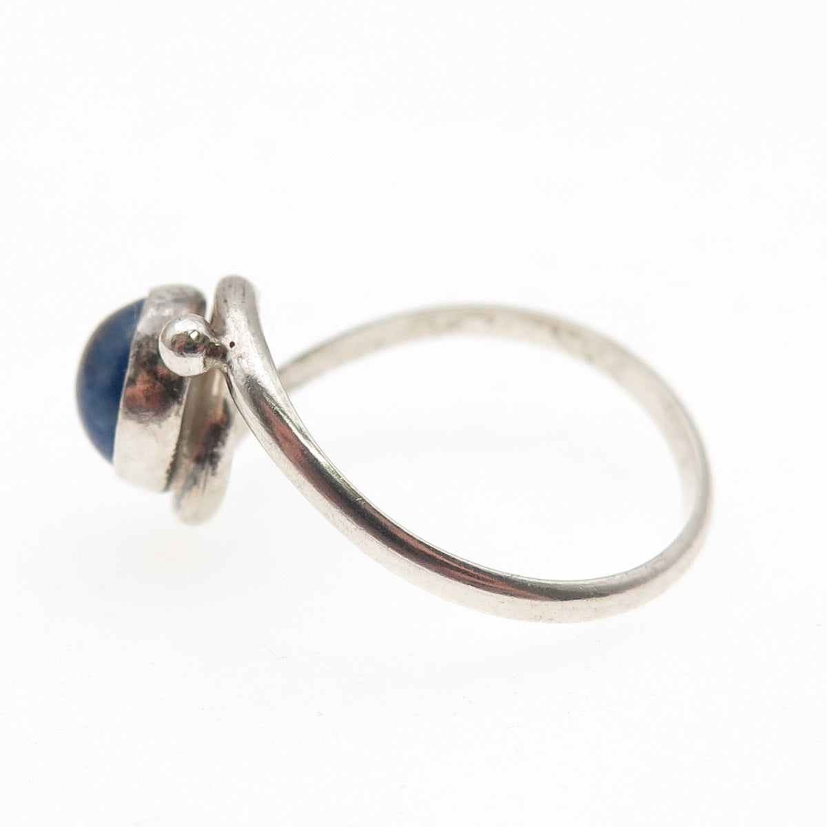 925 Sterling Silver Vintage Real Lapis Modernist Bypass Ring Size 9.25