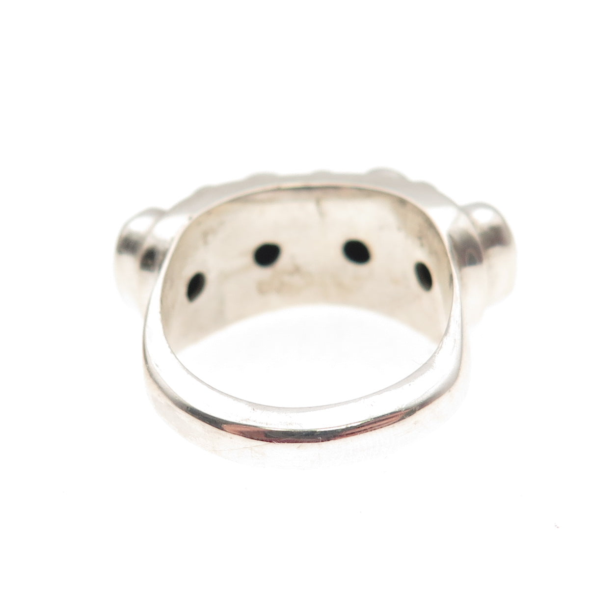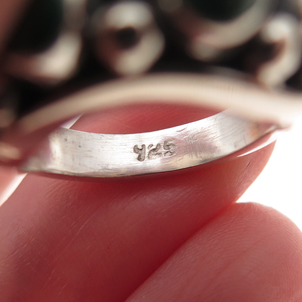 925 Sterling Silver Vintage Real Malachite Beaded Oxidized Ring Size 5.75